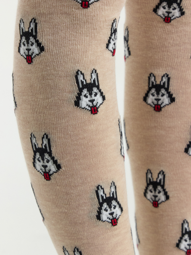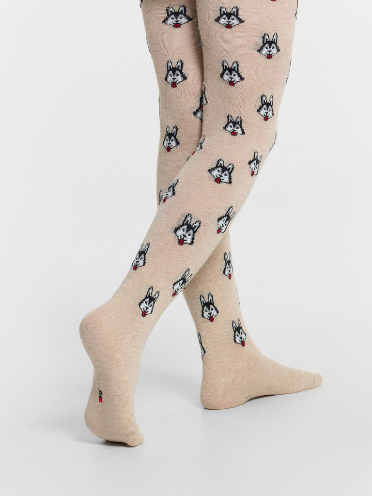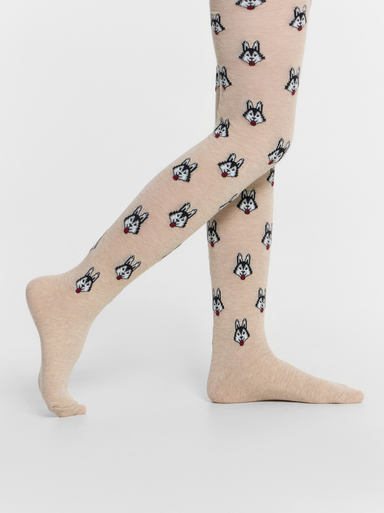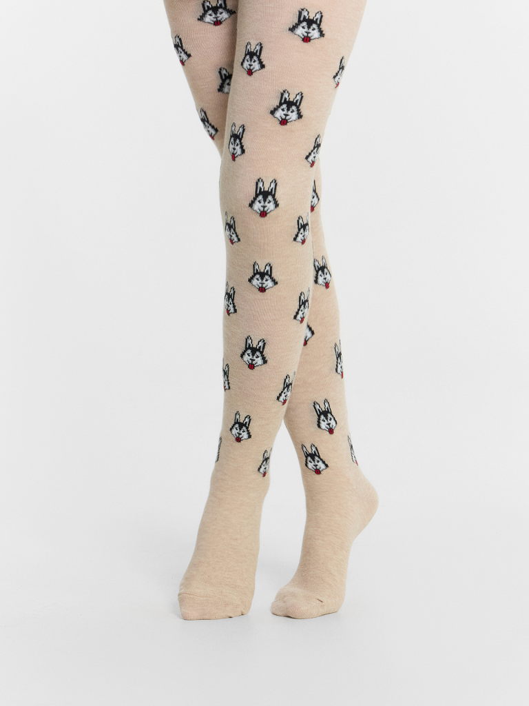 Рис.3216 Колготки гладкие с рисунком в виде хаски.