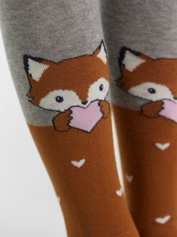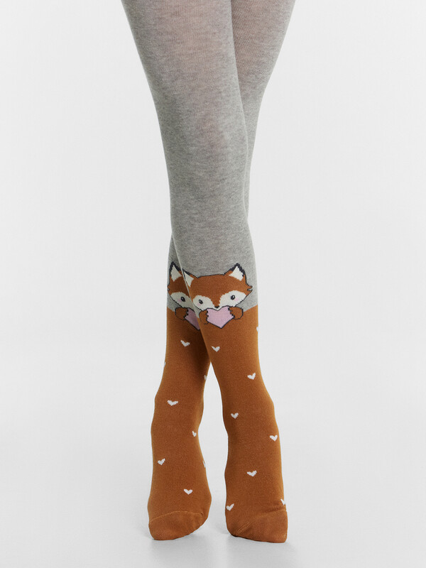 Рис.2949 Гладкие колготки с рисунком в виде лисички.