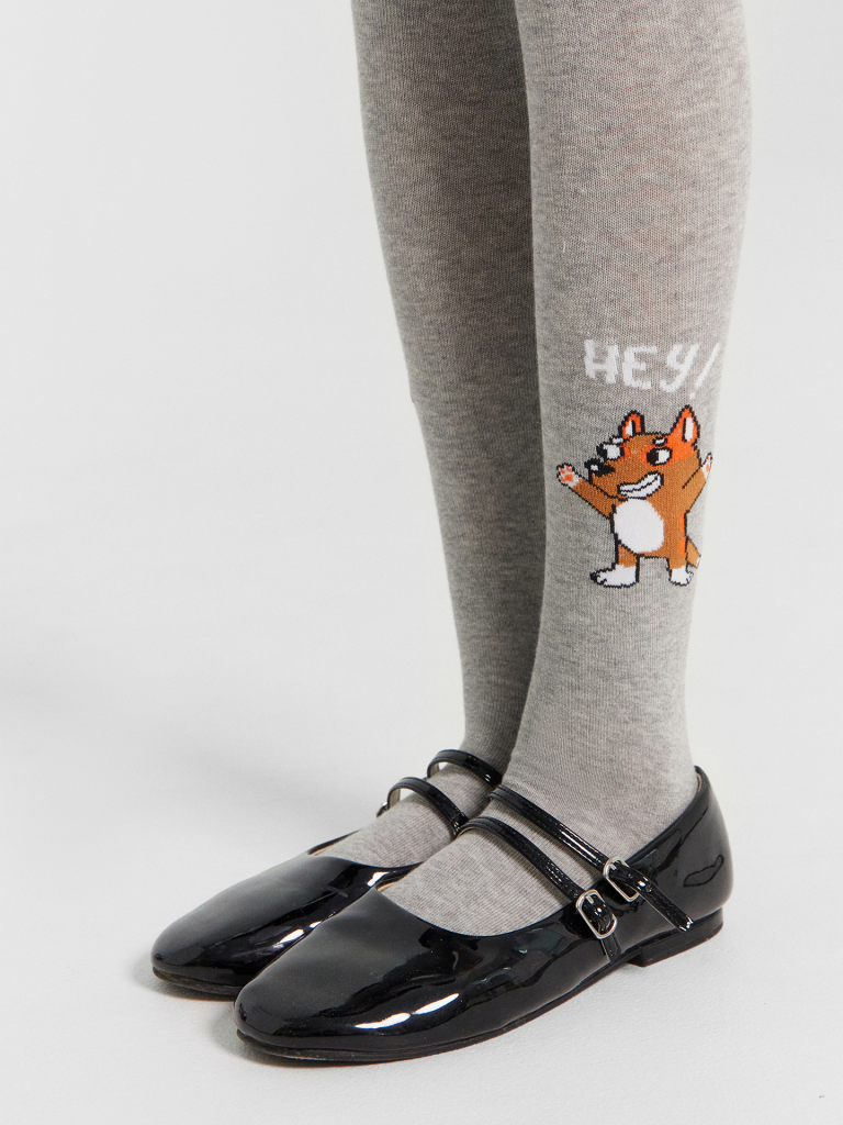 Рис.2952 Гладкие колготки с рисунком в виде лисёнка.