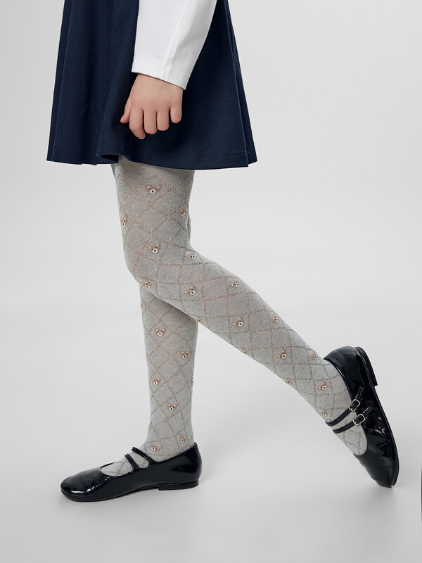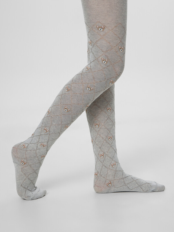 Рис.3232 Гладкие колготки с рисунком в виде мишек с объемным рисунком.