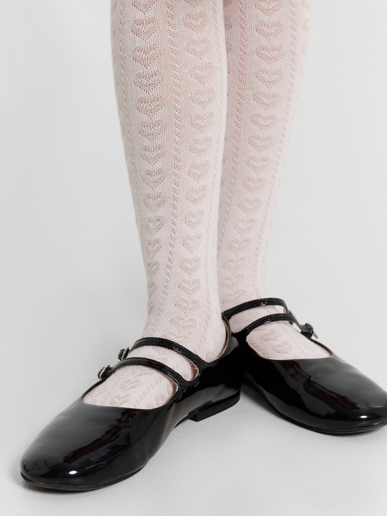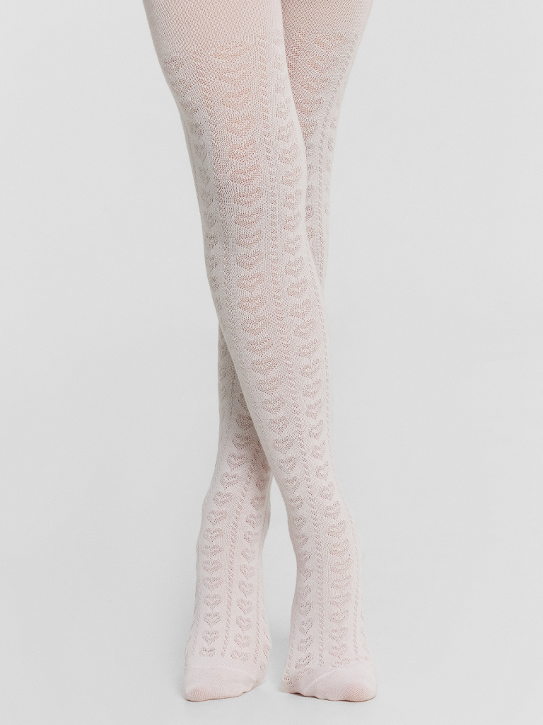 Рис.2795 Гладкие колготки с рисунком в виде сердечек, выполненным перекидным переплетением.
