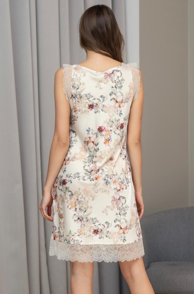 Короткая сорочка Mia-Amore на широких бретелях без подреза под грудью, выполнена из принтованного смесового шелка на матовой основе и декорирована ажурным кружевом, которое расположено по бретелям и низу сорочки. Центр выреза украшает атласный бантик с кристаллами Swarovski.