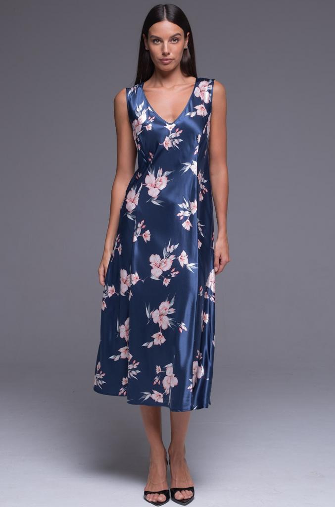 Классическая длинная сорочка Mia-Amore с вертикальными рельефами выполнена из принтованного искусственного шёлка.