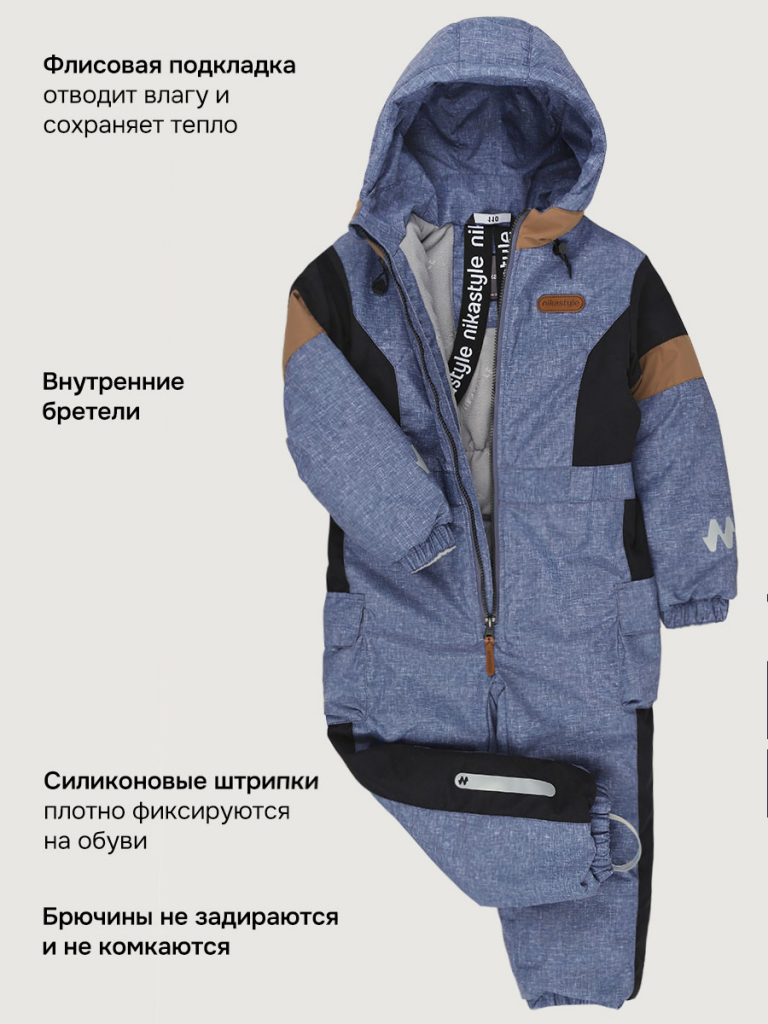 Мембранная ткань - это непродуваемый и водонепроницаемый материал, который надежно защитит от ветра и влаги. Благодаря дышащим свойствам мембраны ребенку будет комфортно в любую погоду, и он не вспотеет.