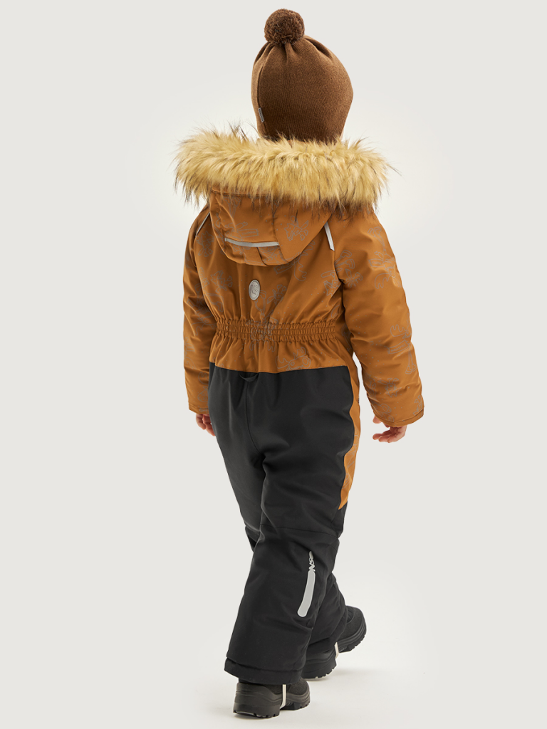 Мембранная ткань это непродуваемый и водонепроницаемый материал, который надежно защитит от ветра и влаги. Благодаря дышащим свойствам мембраны ребенку будет комфортно в любую погоду и он не вспотеет. Дополнительно на ткань нанесен светоотражающий принт. Ткань обработана снаружи экологически чистым протектором TEFLON для защиты от воды и грязи.