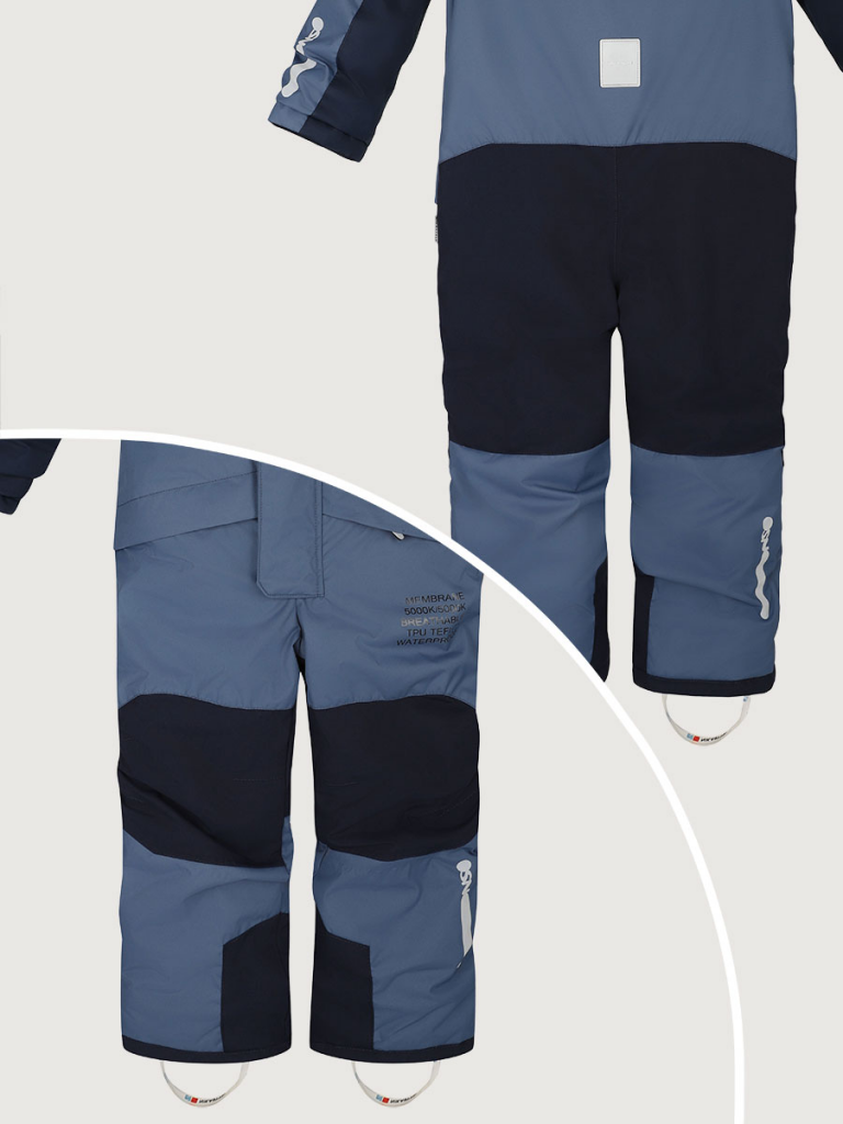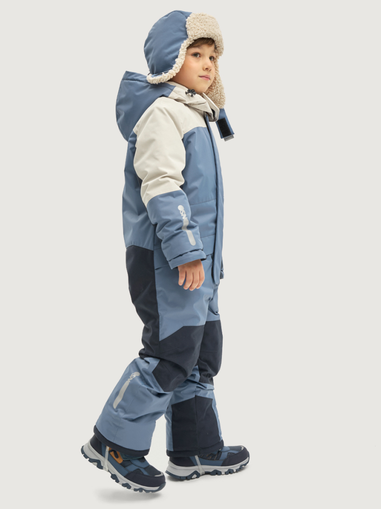 Комбинезон из мембранной ткани 5000/5000 с водо-грязеотталкивающей технологией TEFLON. Мембранная ткань это не продуваемый и водонепроницаемый материал, который надежно защищает от ветра и влаги. Благодаря дышащим свойствам мембраны ребенку будет комфортно в любую погоду, и он не вспотеет. Ткань обработана снаружи экологически чистым протектором TEFLON для защиты от воды и грязи.
