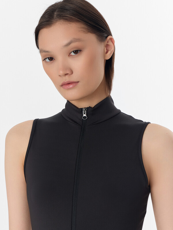 Передняя часть выполнена без швов, что создает гладкую поверхность и исключает дискомфорт во время тренировок. Центральная молния и анатомическая спинка со средним швом обеспечивают идеальную посадку. Усиленная окантовка пройм и плоские швы предотвращают натирание даже при интенсивных нагрузках.