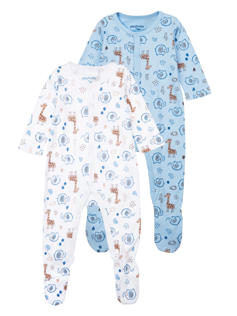 Комбинезон из натурального, хлопкового, двойного трикотажа. 100% хлопок. Застежка на кнопки. На пятке легкая фиксация тонкой резинкой. 2 шт в комплекте.