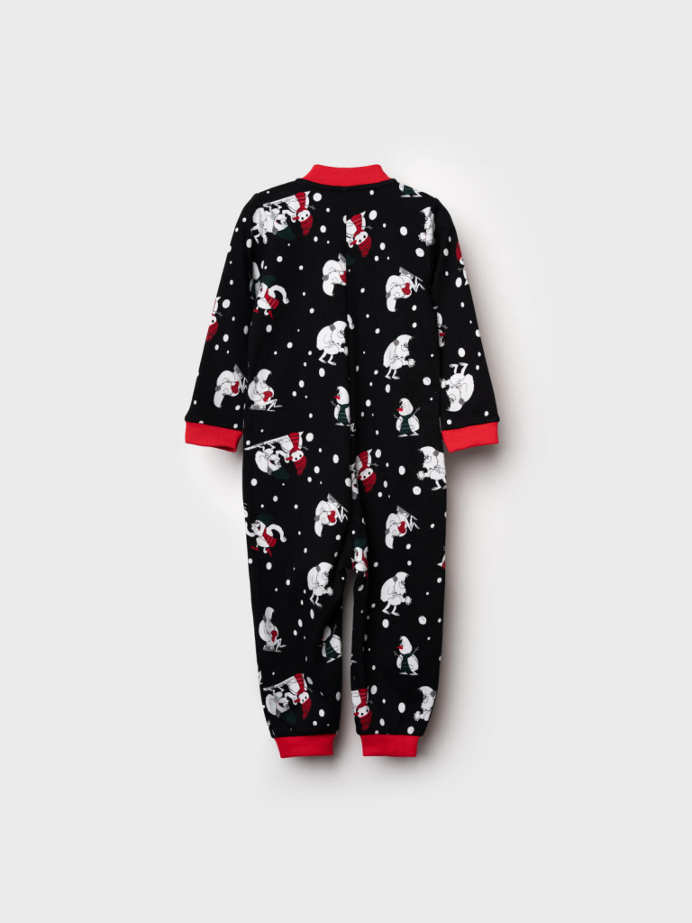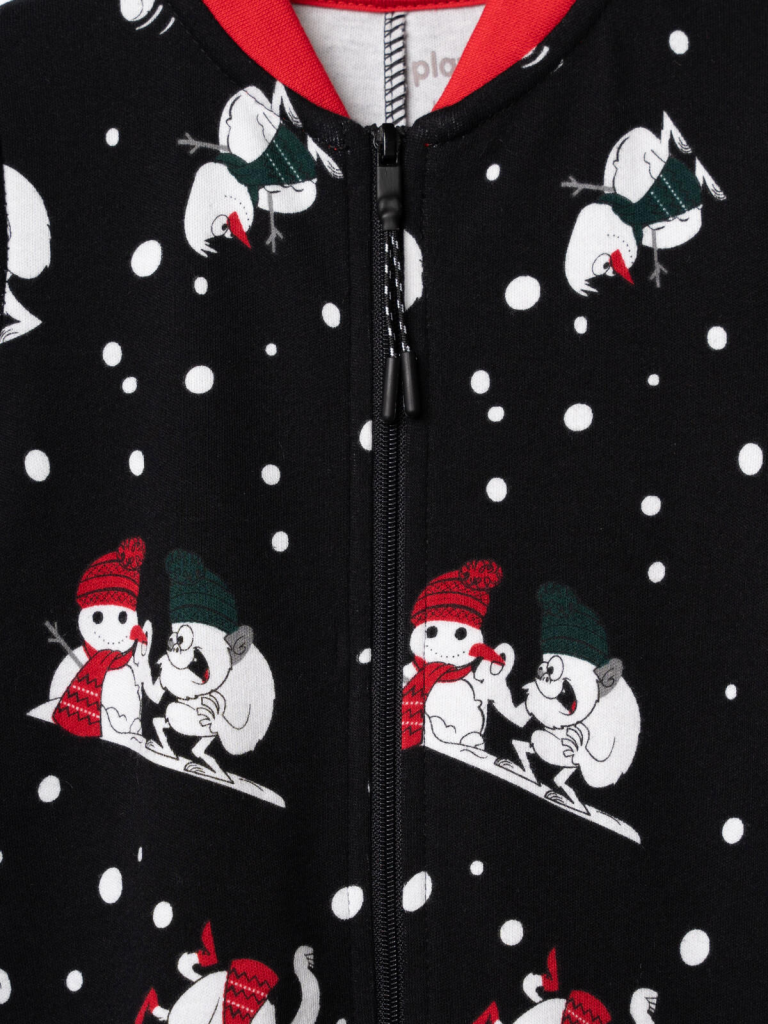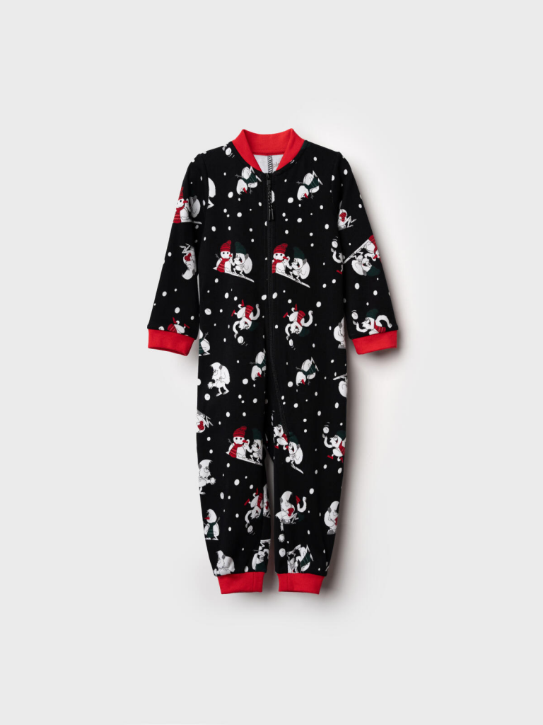 Детский новогодний трикотажный комбинезон для мальчика от PlayToday — уютный, как домашние объятия, и яркий, как новогодняя сказка. В нём малышу будет комфортно и дома, и в детском саду, и на прогулке в тёплое время года.Преимущества модели:+ застёжка на молнию по всей длине — легко и быстро надеть даже на самого активного ребёнка+ мягкий хлопковый интерлок с реактивным принтом — ткань дышит, не раздражает кожу и долго сохраняет яркость+ эластичные манжеты, воротник и низ брюк из риба — комфортная посадка, защита от задирания ткани+ свободный крой — не сковывает движений+ нет карманов — ничего не мешает во время сна или игр+ яркий праздничный принт — создаёт настроение каждый деньЭтот детский комбинезон выполнен из натурального хлопка, приятного к телу и безопасного для кожи ребёнка. Принт устойчив к выцветанию — даже после множества стирок он останется таким же насыщенным. Мягкие манжеты фиксируют рукава и брюки на месте, а застёжка-молния делает процесс переодевания быстрым и удобным.Совет по стилю:Комбинезон отлично сочетается с носочками или тапочками PlayToday дома, а на прогулку можно дополнить его жилеткой или лёгкой курточкой.Размеры: модель представлена на рост 80, 86 и 92 см — подходит для мальчиков от 1 года до 3 лет.Модный детский комбинезон для мальчика от PlayToday — это комфорт, свобода движений и яркое настроение каждый день.