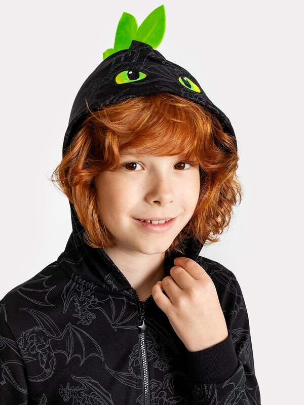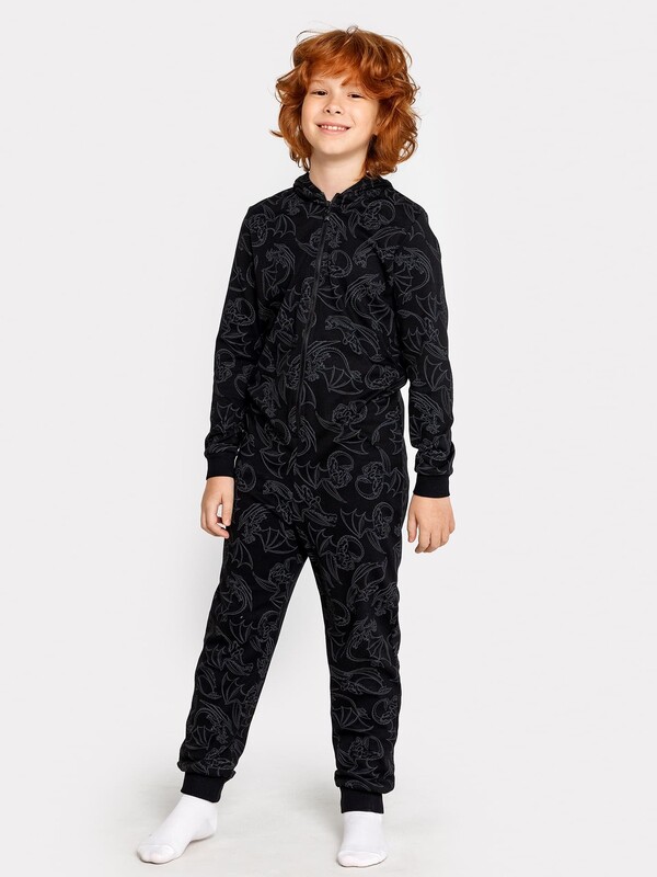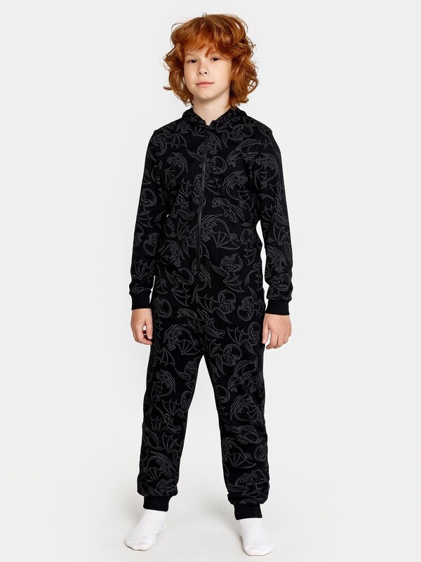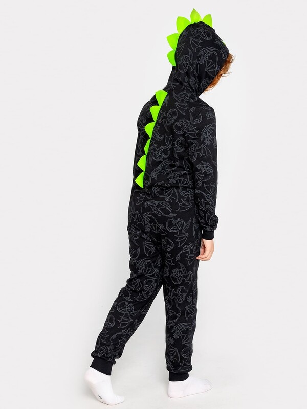 Детский комбинезон из трикотажного интерлока. Комфортный свободный силуэт, уютный капюшон с имитацией "гребня" дракона по спинке из мягкого полотна, удобная застежка-молния по центру. Длинные рукава завершаются широкими манжетами, как и штанины. Очаровательный комбинезон согреет ребенка в прохладное время года, порадует свои дизайном и однозначно улучшит настроение не только мальчику, но и близким. Такой комбез станет отличным подарком на абсолютно любой праздник. Комбинезон домашний кигуруми — отличный выбор для повседневной носки. Рекомендуем!