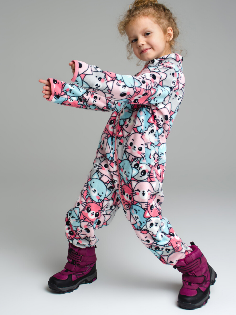 Комбинезон флисовый для девочки разноцветный