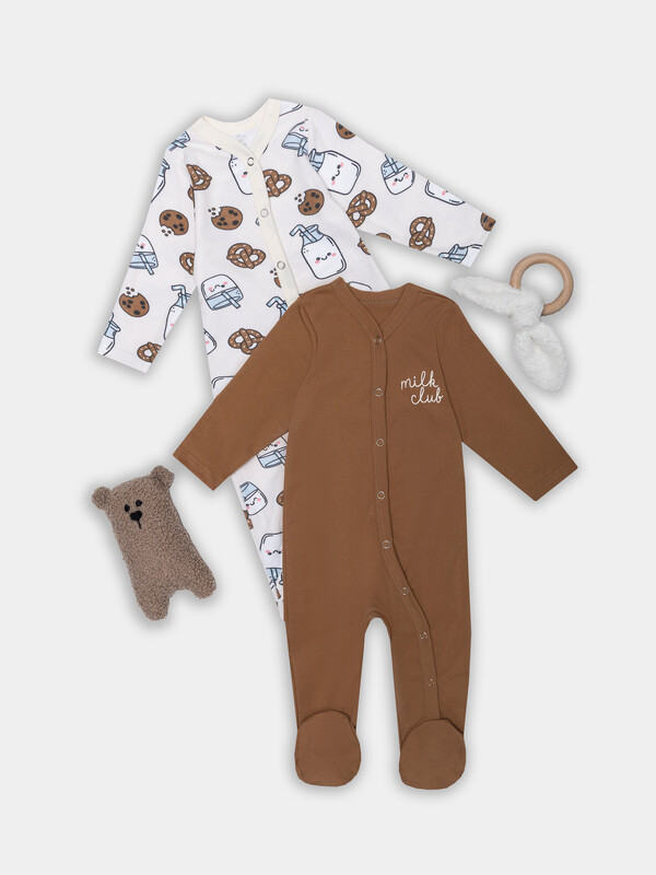 Набор из двух детских комбинезонов — это практичное и нежное решение для самых маленьких. Каждая модель выполнена из мягкого и плотного хлопка, который отлично сохраняет тепло, обеспечивая комфорт малышу даже в прохладную погоду.