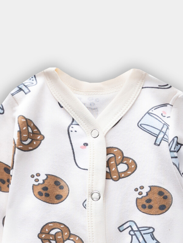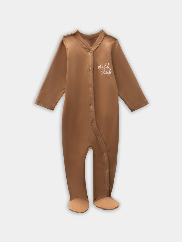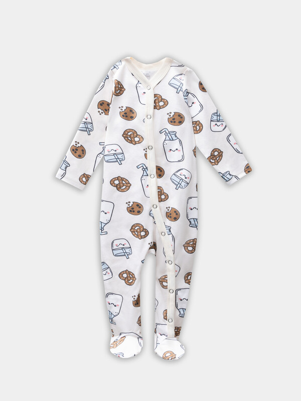 Удобная застежка-кнопки проходит от горловины до низа и переходит на левую ножку, что значительно упрощает процесс переодевания и смену подгузника. Длинные рукава и штанины-следки надежно защищают ручки и ножки от прохлады, сохраняя оптимальную температуру тела. Горловина аккуратно обработана для комфорта нежной кожи, исключая раздражение. Наличие ластовицы в шаговом шве добавляет свободы движений во время сна или активных игр.
