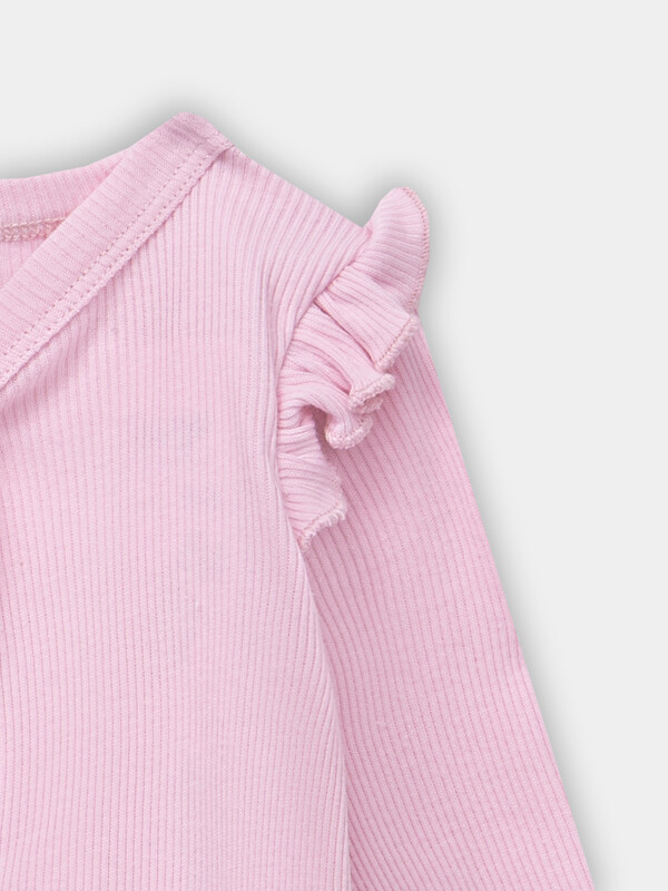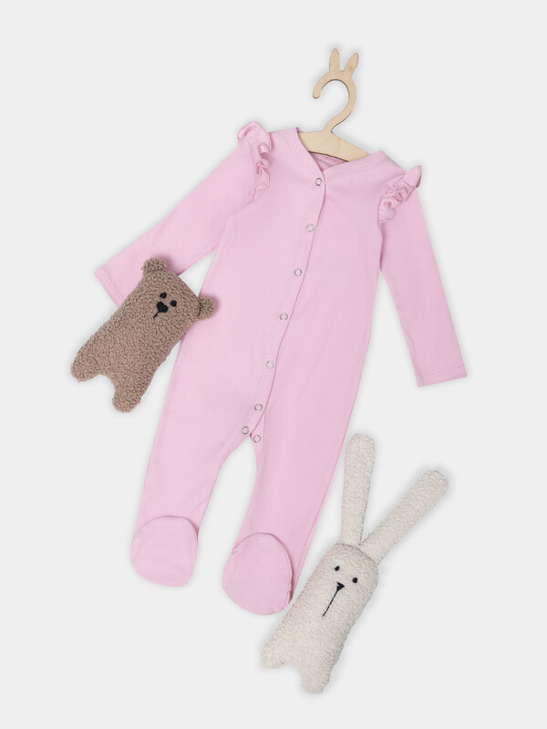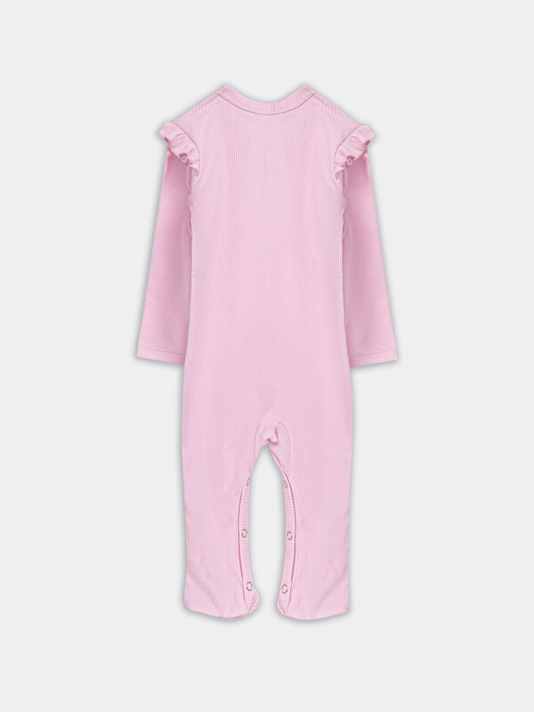 Комбинезон выполнен из рибаны. Спинка цельнокроенная.