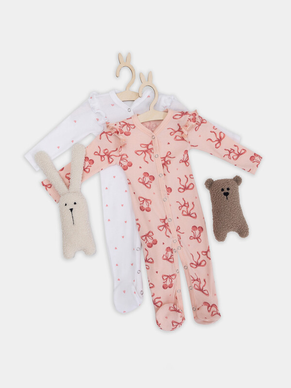 Набор из двух детских комбинезонов — это практичное и очаровательное решение для самых маленьких. Каждая модель выполнена из нежной эластичной рибаны, которая обеспечивает комфорт и свободу движений. Удобная застежка на кнопках по всей длине и по ножкам значительно упрощает процесс переодевания и смены подгузника.