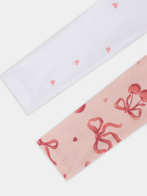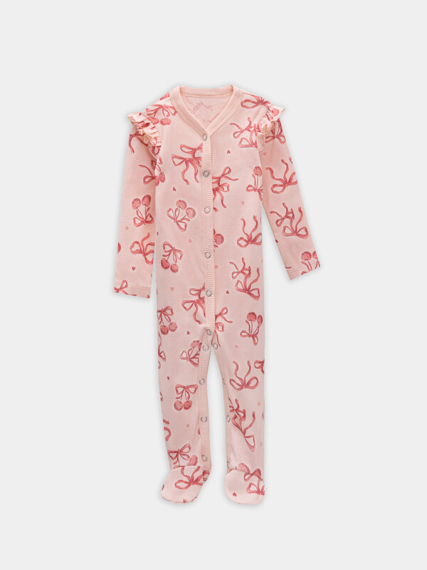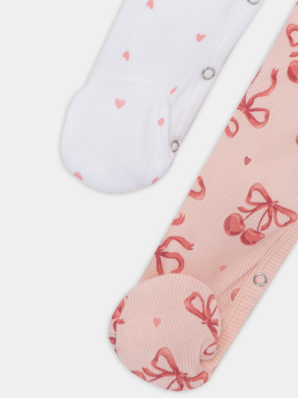 Комбинезон сердечки на белоснежном +бантики на персике