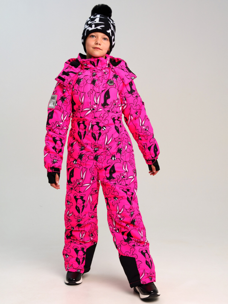 Комбинезон текстильный с полиуретановым покрытием для девочек фуксия,черный,белый