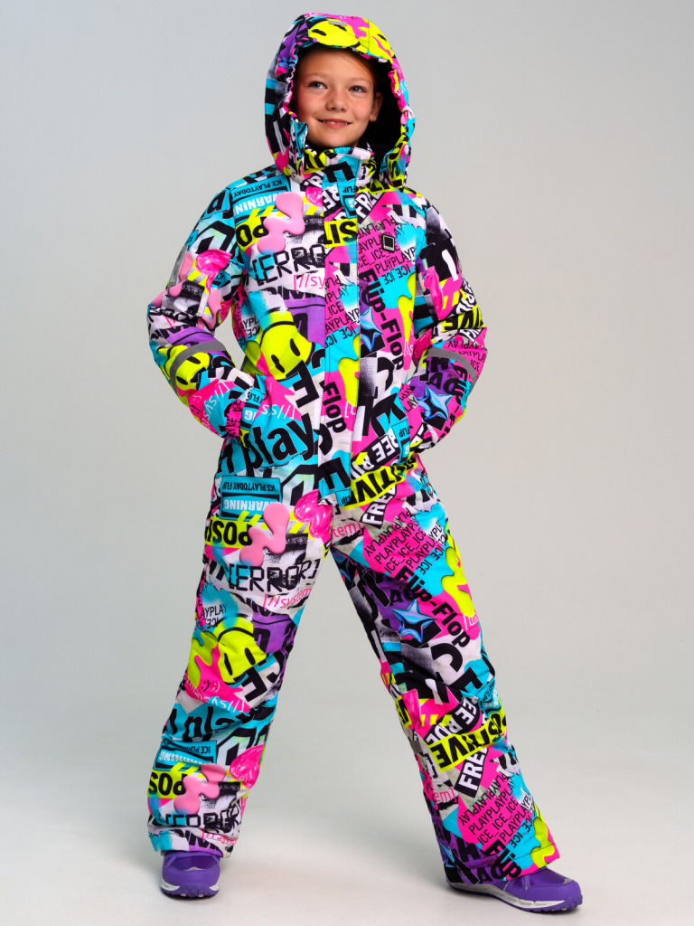 Комбинезон текстильный с полиуретановым покрытием для девочек разноцветный