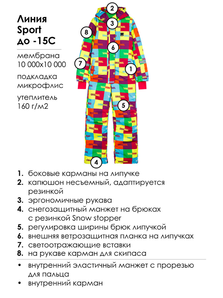 Зимний горнолыжный комбинезон для девочки подростка. Особенности модели: Линия Sport, Температурный режим до -15С,мембрана 10 000х10 000,Утеплитель 160 г/м2,подкладка - микрофлис, боковые карманы на липучке,капюшон несъемный, адаптируется резинкой,эргономичные рукава,снегозащитный манжет на брюках с резинкой Snow stopper,регулировка ширины брюк липучкой,внутренний эластичный манжет с прорезью для пальца, внутренний карман,внешняя ветрозащитная планка на липучках, светоотражающие вставки, Утепленный горнолыжный комбинезон - идеальный выбор для активного отдыха на свежем воздухе в зимний период. Инновационный утеплитель и флисовая подкладка сохраняют тепло морозную погоду.Мембранный материал делает этот яркий и модный комбинезон непромокаемым: мембрана не пропускает влагу снаружи, но выводит её изнутри, что крайне важно во время подвижных игр и занятий спортом.Легкий, теплый и удобный, комбинезон идеально подходит для спорта, лыж, сноуборда и игр на свежем воздухе в холодный период года: зима, поздняя осень и ранняя весна.*Пожалуйста, обратите внимание, что указанный температурный режим является приблизительным и зависит от многих факторов, таких как возраст, физическое состояние, уровень активности ребенка и количество слоев одежды. Время, проведенное на открытом воздухе, и погодные условия, такие как холодный ветер, могут повлиять на тепловые характеристики изделия. Убедитесь, что защищены от холода голова, руки и ноги.
