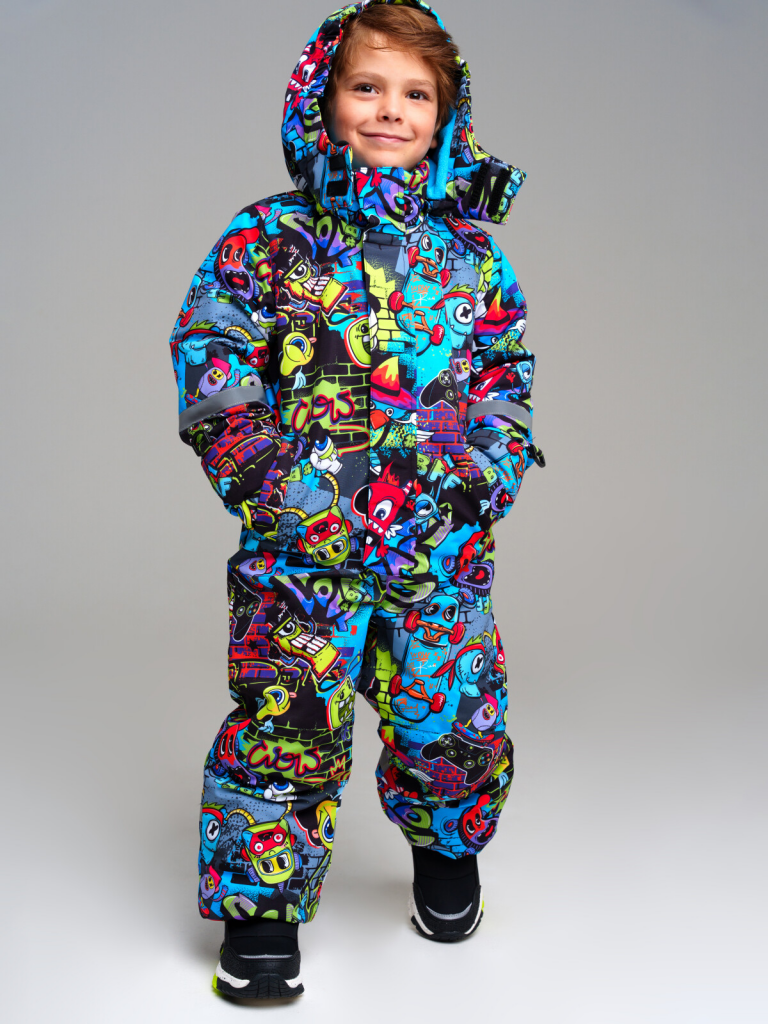 Зимний детский комбинезон для мальчика. Особенности модели: Линия Active, Температурный режим до -25С, мембрана 5000х5000, подкладка - флис,Утеплитель 200 г/м, боковые карманы на липучке,капюшон съемный на кнопках, адаптируется резинкой,защита подбородка при застегивании молнии,низ брючин на резинке,внутренний эластичный манжет с прорезью для пальца,внутренняя утяжка пояса,пряжки на рукавах для крепления варежек (перчаток),съемные штрипки,внешняя ветрозащитная планка на липучках, Детский утепленный горнолыжный комбинезон - идеальный выбор для активного отдыха на свежем воздухе в зимний период. Инновационный утеплитель и флисовая подкладка сохраняют тепло морозную погоду.Мембранный материал делает этот яркий и модный комбинезон непромокаемым: мембрана не пропускает влагу снаружи, но выводит её изнутри, что крайне важно во время подвижных игр и занятий спортом. Легкий, теплый и удобный, комбинезон идеально подходит для спорта, лыж, сноуборда и игр на свежем воздухе в холодный период года: зима, поздняя осень и ранняя весна. *Пожалуйста, обратите внимание, что указанный температурный режим является приблизительным и зависит от многих факторов, таких как возраст, физическое состояние, уровень активности ребенка и количество слоев одежды. Время, проведенное на открытом воздухе, и погодные условия, такие как холодный ветер, могут повлиять на тепловые характеристики изделия. Убедитесь, что защищены от холода голова, руки и ноги.