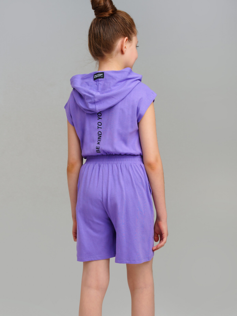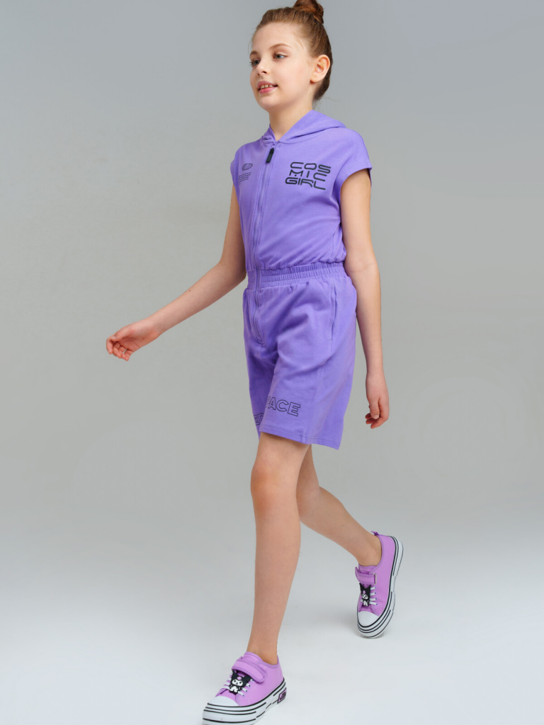 Комбинезон для девочки подростка. Пояс на резинке. Застежка на молнию. Функциональные боковые карманы. Высокое содержание хлопка 95%. Благодаря наличию эластана в составе ткани изделие держит форму и меньше мнется. Модель выполнена из качественного и приятного на ощупь трикотажа.
