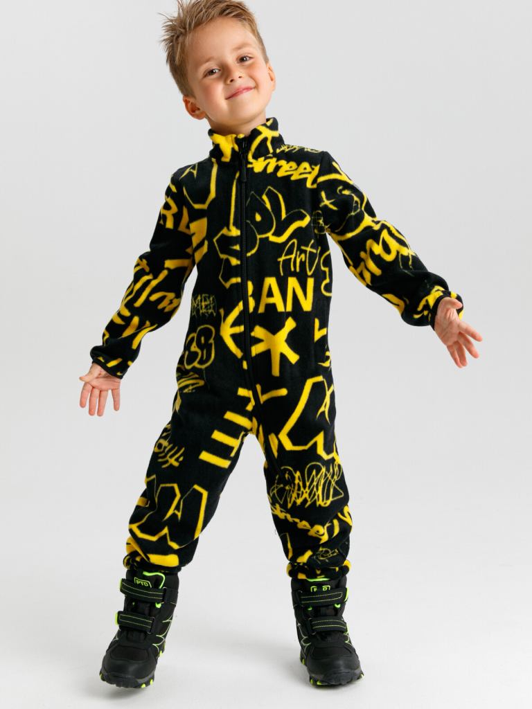 Комбинезон трикотажный для мальчиков черный,жёлтый