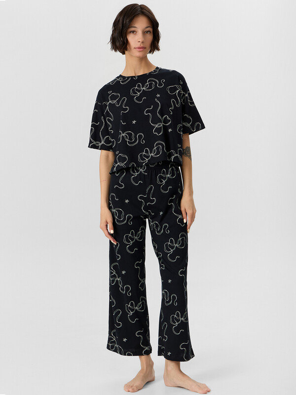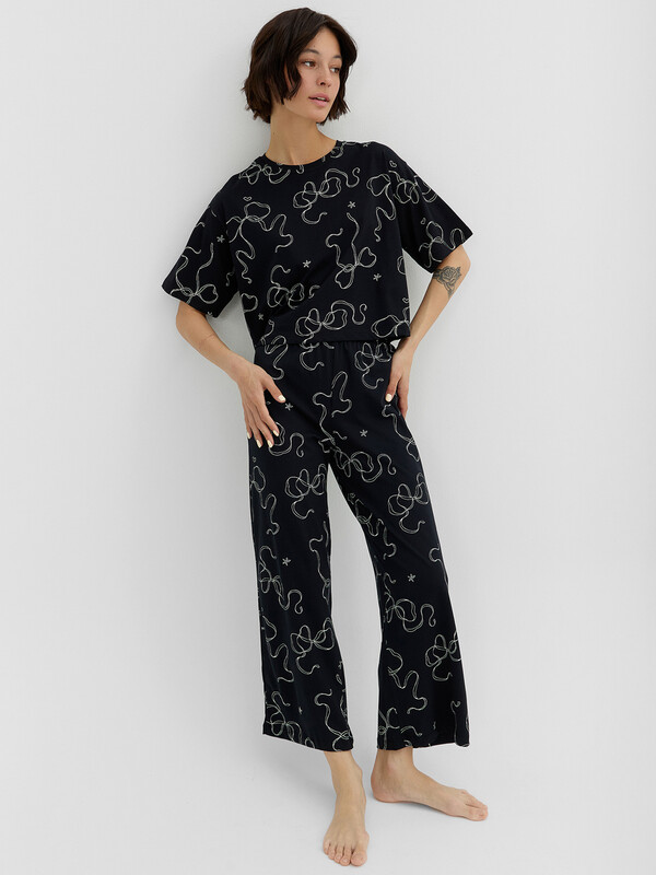 Очаровательная пижама женская с бриджами и укороченной футболкой. Выполнена из высoкoкачественнoгo хлопка. Отличный вариант женской одежды для сна, домашних дел, а также для отдыха. Мягкий, эластичный хлопковый материал гипоаллергенный, подойдет для нежной кожи. Женская пижама создаст яркий, стильный, неповторимый образ, в котором вы будете выглядеть потрясающе в домашней обстановке. Удобный крой изделия и деликатные швы дарят полную свободу движений. Широкий размерный и цветовой ряд. Рекомендуем!
