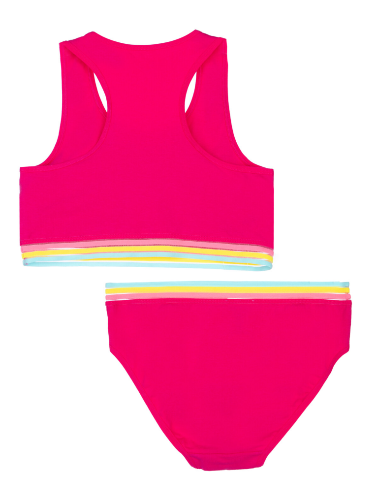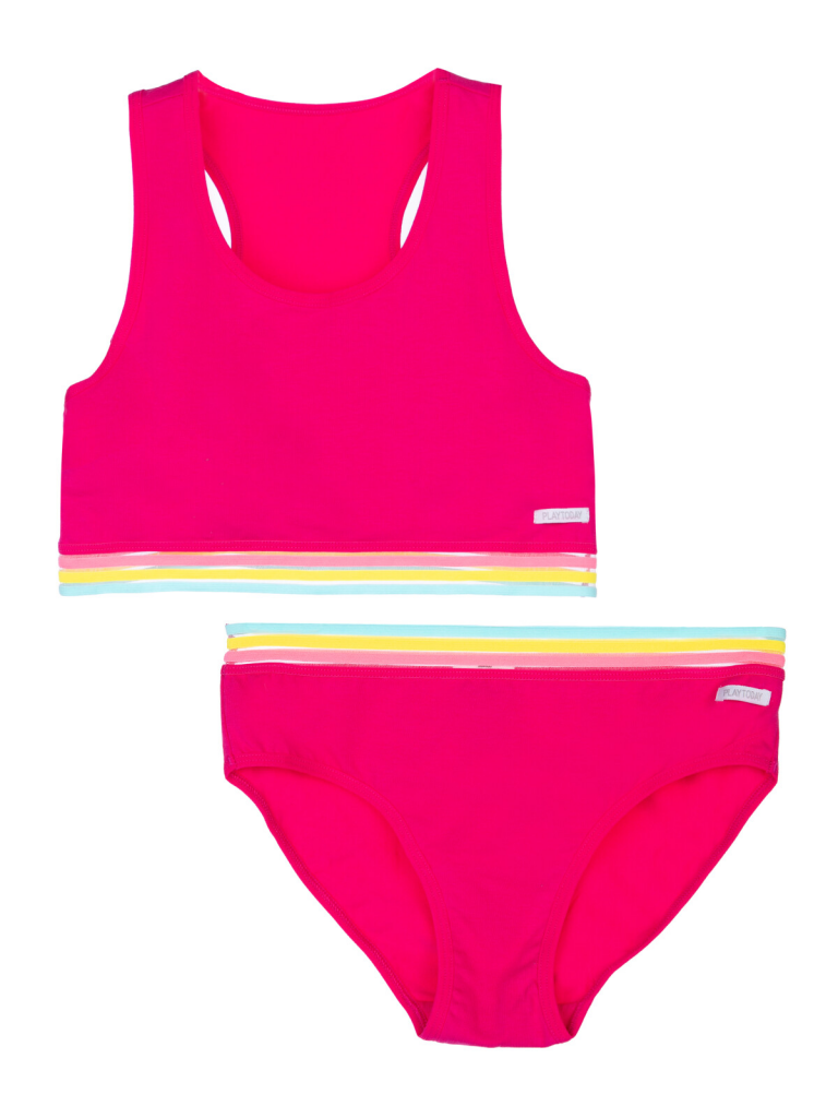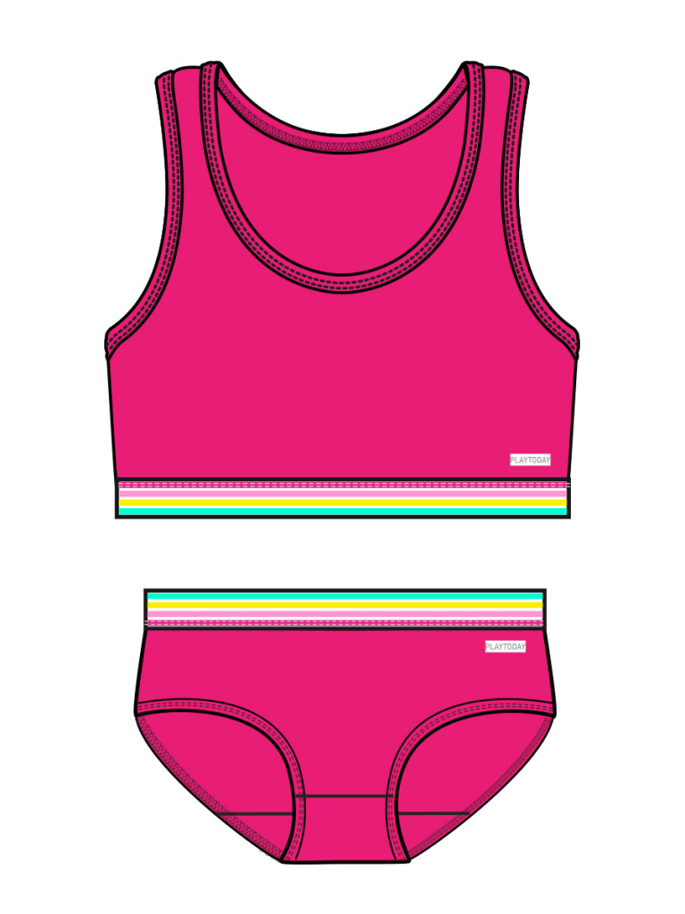 Комплект белья: слипы и топ со съемными чашками. По низу топа и талии расположена декорированная резинка.