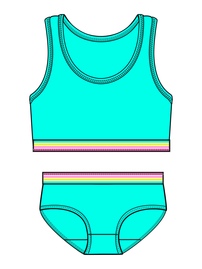 Комплект белья: слипы и топ со съемными чашками. По низу топа и талии расположена декорированная резинка.