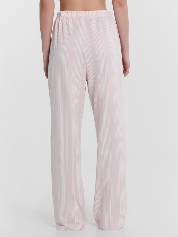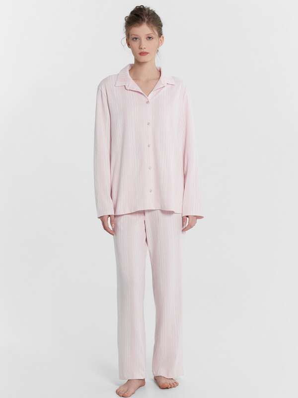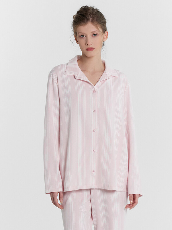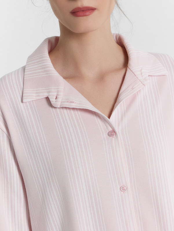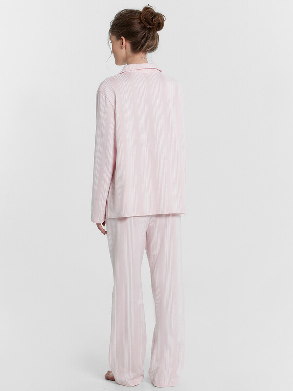 Женская пижама из нежной кулирки предлагает стиль и комфорт для вашего сна и отдыха. Силуэт блузки прямой и свободный, с длинными рукавами и немного спущенной линией плеча. Модель имеет центральную застежку на пуговицы и стояче-отложной воротник. Брюки свободного силуэта с эластичным поясом обеспечивают удобную посадку. Пижама, выполненная из кулирки, обеспечивает мягкость, эластичность и комфорт при носке. Этот материал позволяет коже дышать, не вызывает раздражений и сохраняет свою форму после многочисленных стирок. Кулирка также известна своей долговечностью и устойчивостью к износу, что делает эту пижаму идеальной для повседневного использования. Наслаждайтесь уютом и стилем каждый день с этой удобной и стильной пижамой Mark Formelle.