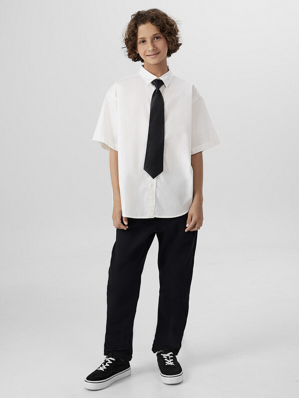Комплект для мальчиков рубашка и галстук — это готовое стильное решение, которое избавляет от необходимости подбирать элементы образа отдельно. Рубашка из мягкого стопроцентного хлопка обеспечивает комфорт и свободу движений, а классический воротник и короткие рукава делают её универсальной для школы и праздников. Галстук идеально сочетается с рубашкой по цвету и фактуре, не мнётся и сохраняет безупречный вид весь день.