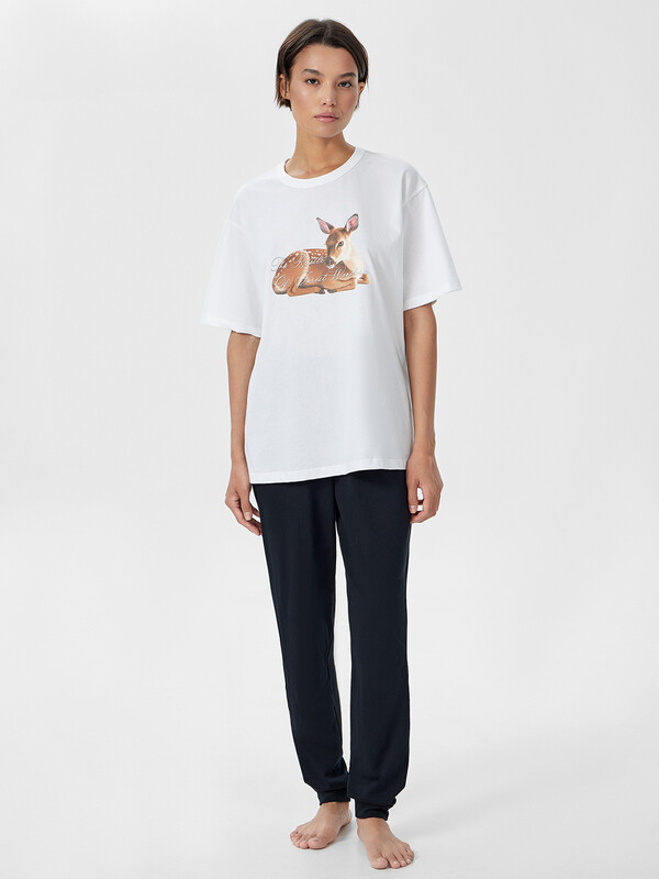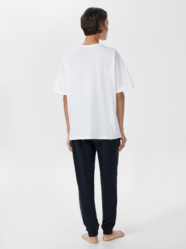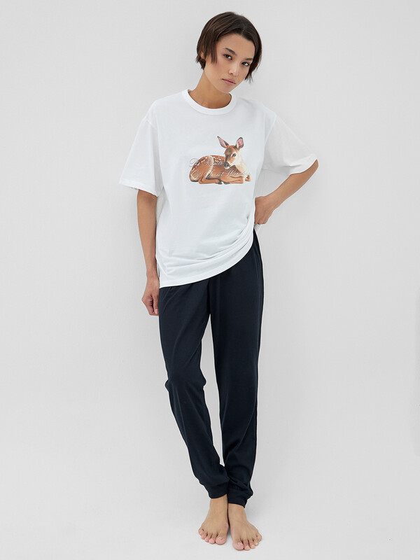 Эта женская пижама — истинное воплощение нежности, комфорта и элегантности, созданное для тех, кто ценит гармонию дома и стиль даже в моменты отдыха. Выполненная из высококачественного хлопка, она бережно заботится о вашей коже, позволяя телу дышать и сохранять тепло в прохладное время года. Футболка прямого силуэта с классической длиной идеально садится по фигуре, не стесняя движений, а слегка зауженные брюки добавляют образу утонченности и легкости. Благодаря продуманному крою и стойкости ткани, пижама сохраняет свою форму даже после многочисленных стирок, оставаясь такой же привлекательной, как в первый день. Широкая палитра цветов и размерный ряд позволяют выбрать идеальный вариант для каждой женщины, а удобная посадка превращает каждое утро и вечер в маленький ритуал уюта. Это не просто домашняя одежда — это забота о себе, выраженная в ткани, линии и чувстве, которое она дарит.