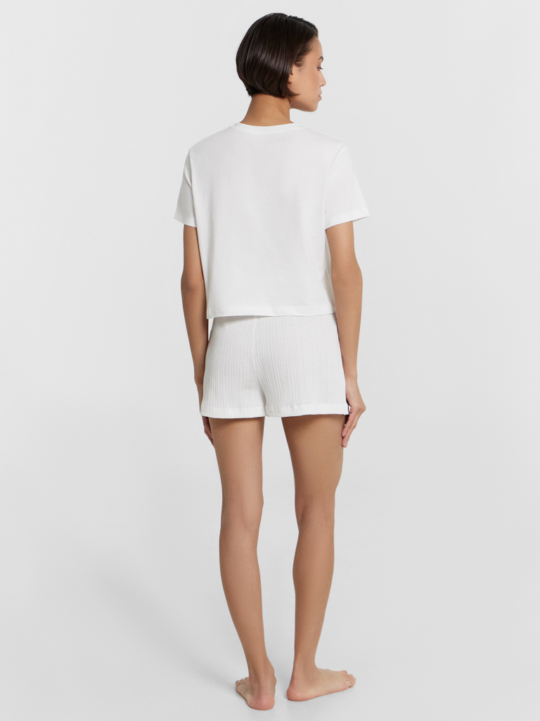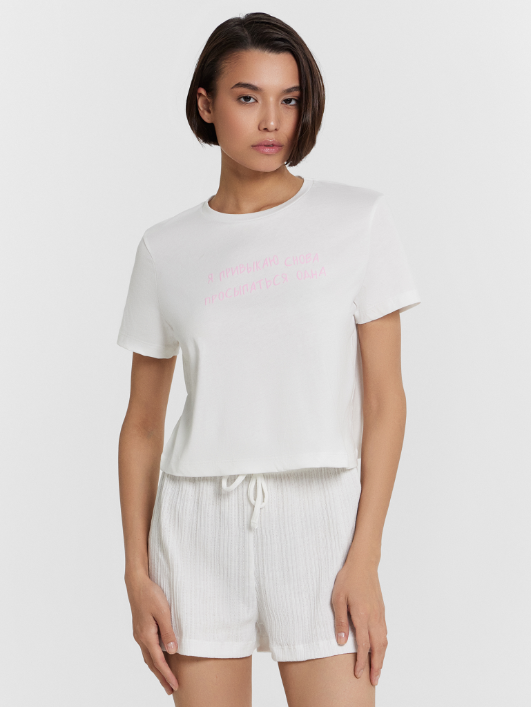 Эта пижама — идеальное сочетание удобства и практичности для повседневного гардероба. Футболка прямого кроя с круглой горловиной и короткими рукавами создает комфортный и лаконичный образ, идеально подходящий для дома или отдыха. Нижние срезы аккуратно обработаны швом вподгибку, что гарантирует долговечность и эстетичный вид. Шорты прямого силуэта обеспечивают свободу движений, а эластичный пояс добавляет удобства. Имитированная завязка-шнур на поясе придает модели стильный акцент, сохраняя лаконичность дизайна. Низ шорт также обработан швом вподгибку, что подчеркивает аккуратность изделия. Материал комплекта — хлопок с добавлением искусственных волокон, который делает вещи прочными, износостойкими и приятными к коже. Этот комплект станет вашим любимым выбором для домашнего комфорта! Рекомендуем.