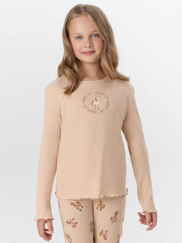 Горловина круглой формы обработана обтачкой из основного полотна. Рукава длинные втачные. Перед и спинка цельнокроеные. Низ джемпера и рукавов обработан на микрооверлоке.