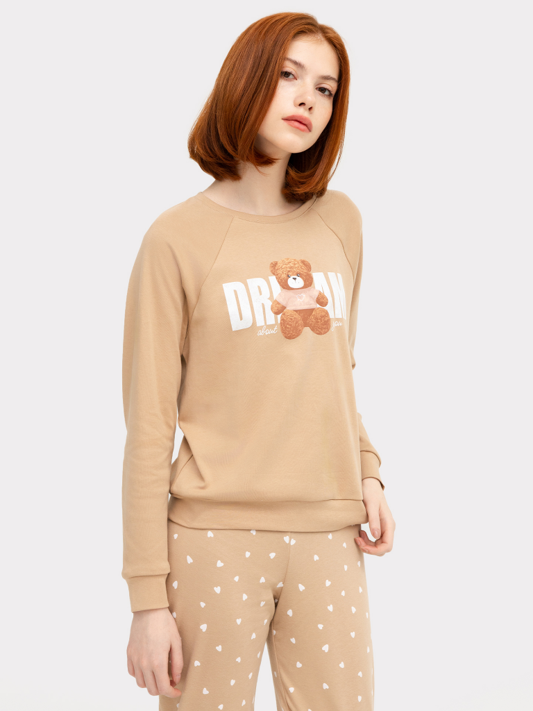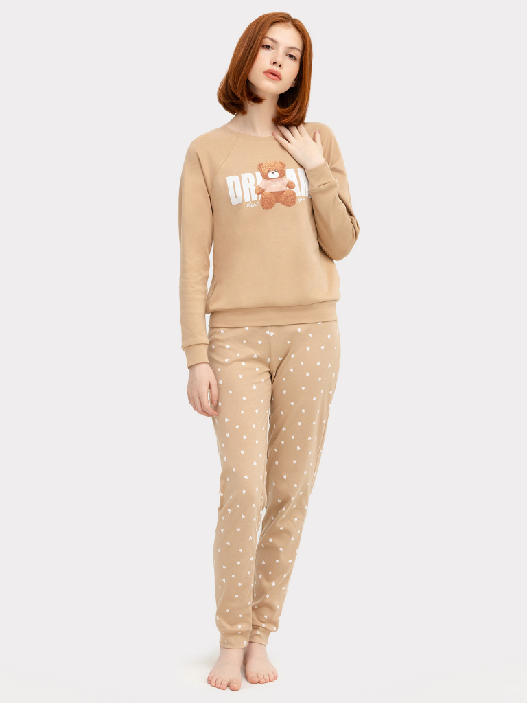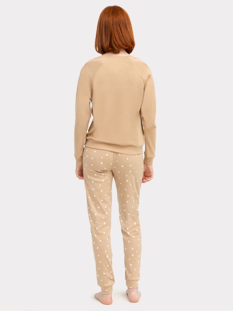 Стильная пижама женская из высококачественного хлопка с принтом в виде сердечек. Джемпер имеет свободный силуэт, длинные рукава-реглан с манжетами, горловину круглой формы. Брюки свободного силуэта длиной до косточки с классической линией талии и манжетами. Этот комфортный комплект не только согреет прохладными вечерами, но и создаст прекрасное настроение. Идеальный вариант на каждый день. Широкая размерная сетка, есть модели plus-size, в линейке много базовых и других милых расцветок пижам. Рекомендуем этот женский комплект для сна, отдыха и домашних дел, а также в качестве приятного подарка для любимых!