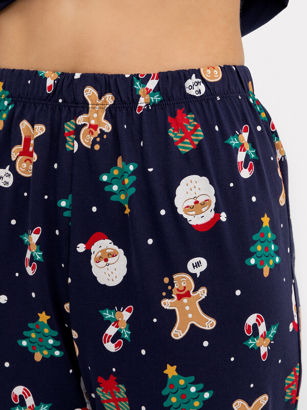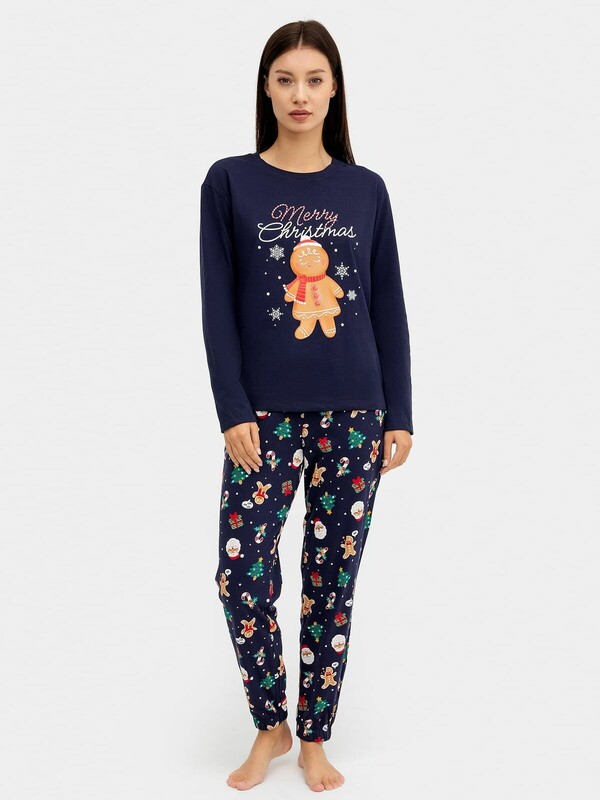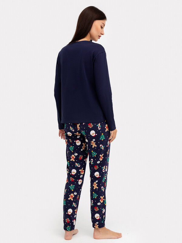 Милый женский комплект из высококачественного хлопка с принтом. Джемпер свободного силуэта с круглой горловиной и длинными рукавами. Свободные брюки, чуть зауженные к низу, длиной до косточки, с классической линией талии и эластичной тесьмой в поясе.Идеальный вариант пижамы на каждый день. Широкая размерная сетка, есть модели plus-size, в линейке много базовых и других милых расцветок пижам. Рекомендуем для сна, отдыха и домашних дел, а также в качестве приятного подарка для любимых!