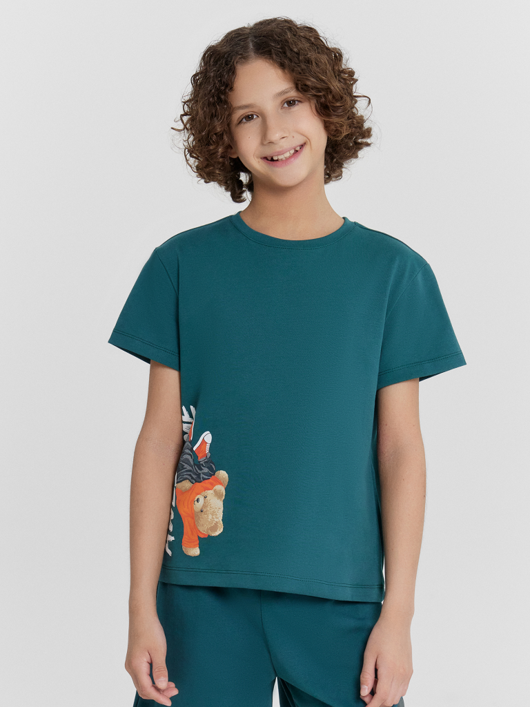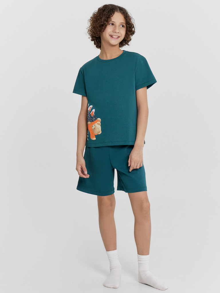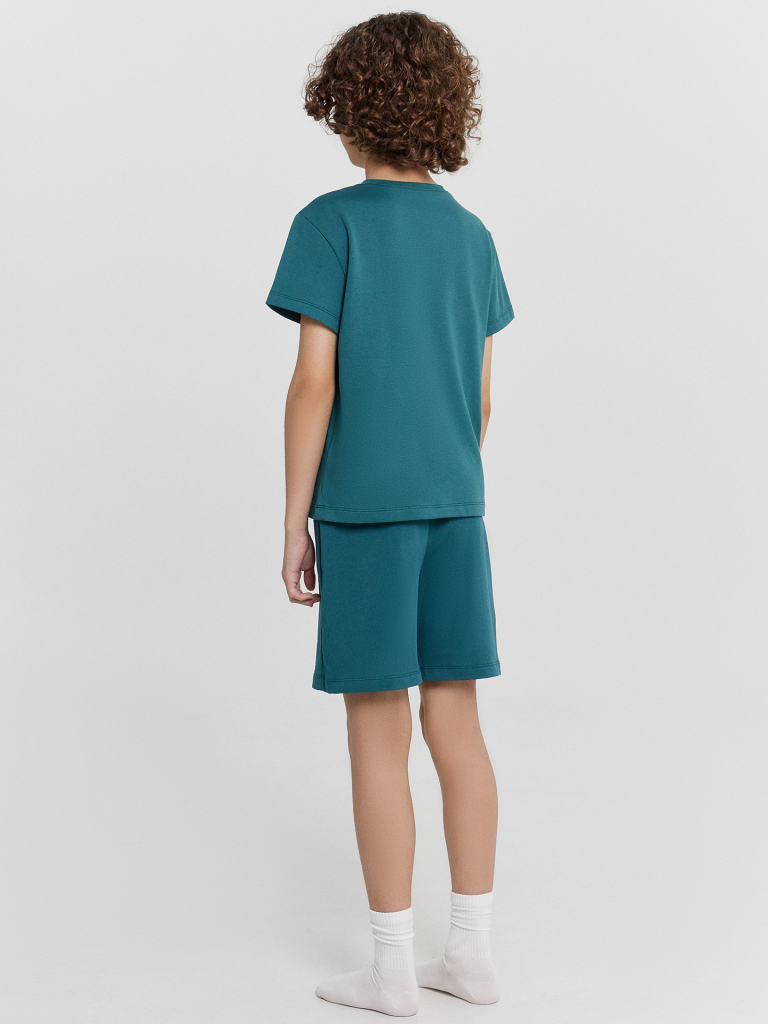 Домашний комплект для мальчиков — идеальное сочетание комфорта и практичного дизайна. Футболка прямого силуэта с короткими рукавами и круглой горловиной обеспечивает удобную посадку и свободу движений. Легкий крой делает ее комфортной для сна и повседневного отдыха. Шорты длиной до колен оснащены эластичным поясом с регулируемым шнурком, что позволяет индивидуально подстраивать посадку, обеспечивая дополнительный комфорт. Выполненный из 100% хлопка, комплект мягкий, дышащий и приятный к коже, создавая максимальное удобство. Этот вариант отлично подойдет мальчикам, которые ценят удобство, качество и стиль, делая отдых и сон еще более приятным!