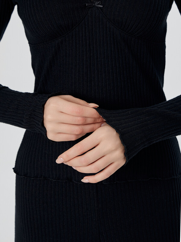 Изящные бантики в качестве декора добавляют комплекту женственности и шарма. Натуральная вискоза в составе обеспечивает воздухообмен, а эластан сохраняет идеальную посадку. Комплект подойдет тем, кто ценит в домашней одежде не только удобство, но и эстетику деталей. Идеальный вариант для расслабленного вечера или спокойного дня дома.