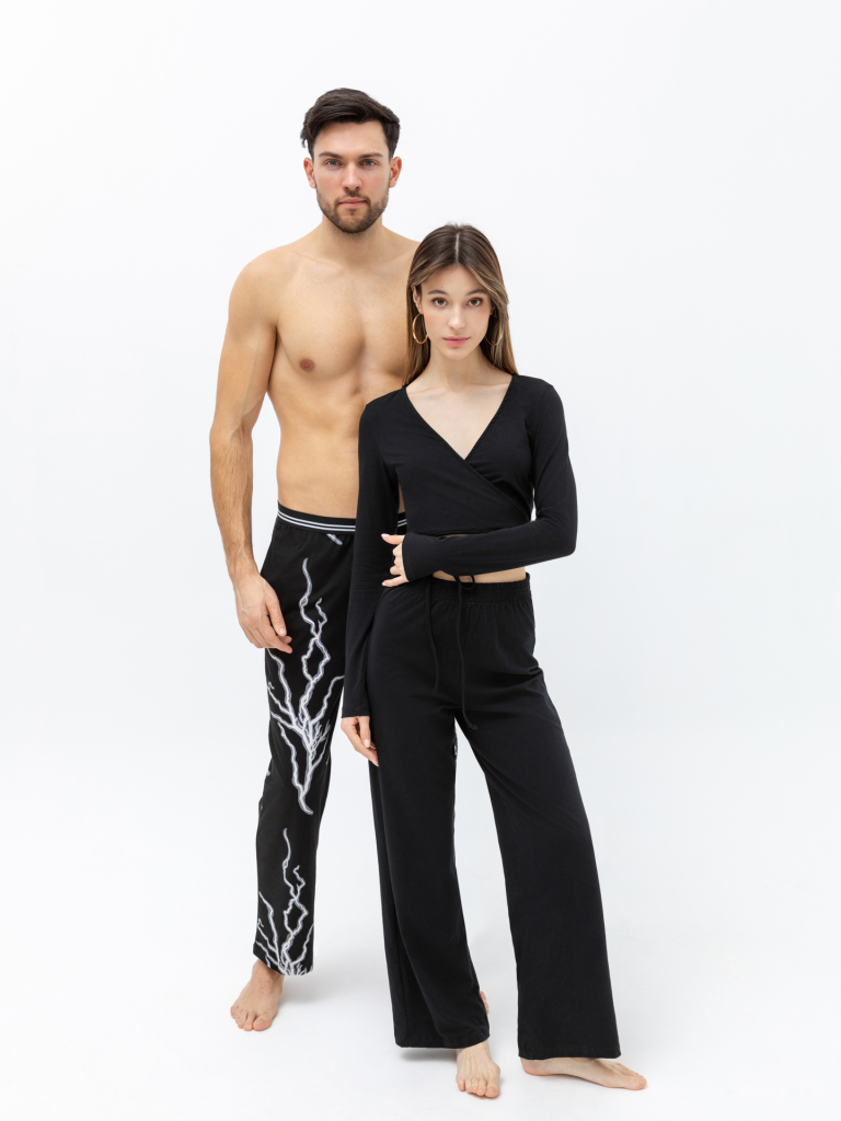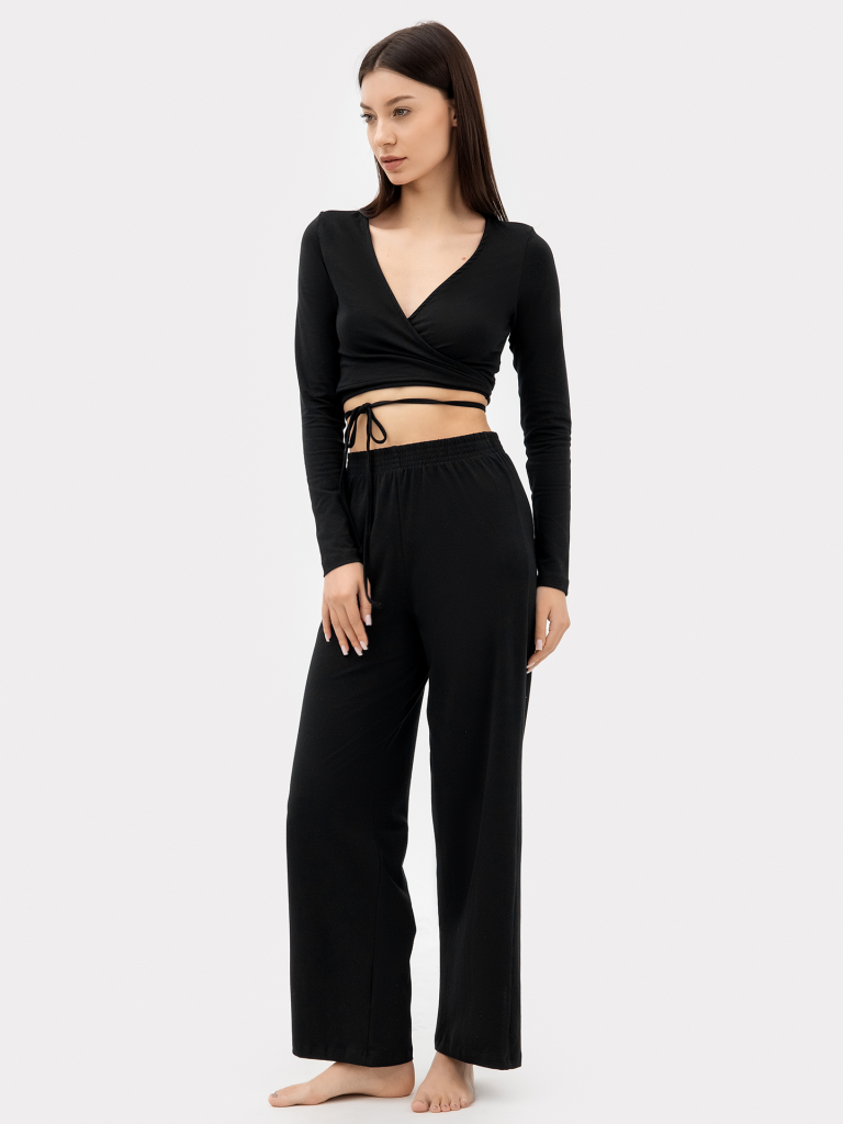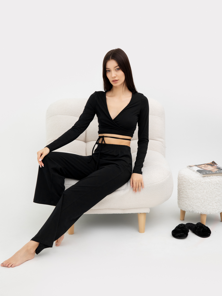 Стильный женский комплект из джемпера и брюк. Модель выполнена из высококачественного хопка. Джемпер женский прилегающего силуэта, на запах, на завязках. Рукава длинные, втачные. Брюки с посадкой на талии, свободного силуэта. Пояс цельнокроеный с резинкой внутри. В пижаме абсолютно не жарко, комфортный материал не сковывает движений. Красивая и интересная модель на каждый день. Такую пижаму можно использовать как комплект одежды для дома, отдыха и сна. В линейке несколько интересных расцветок, широкий размерный ряд. У нас вы легко найдете оригинальный подарок девушке на 14 февраля. Выбирайте этот комплект в качестве милого презента для любимой мамы, сестры или подруги!