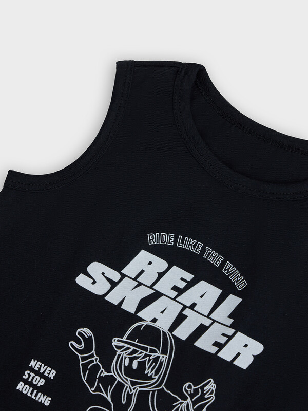 Бельевой комплект для мальчиков, состоящий из нежного и приятного к телу хлопкового полотна. Майка полуприлегающая, с круглым вырезом. Трусы-боксеры без боковых швов и эластичной тесьмой в поясе. Рекомендуем!