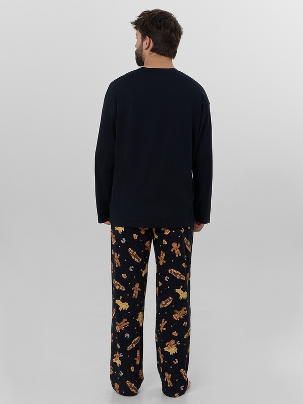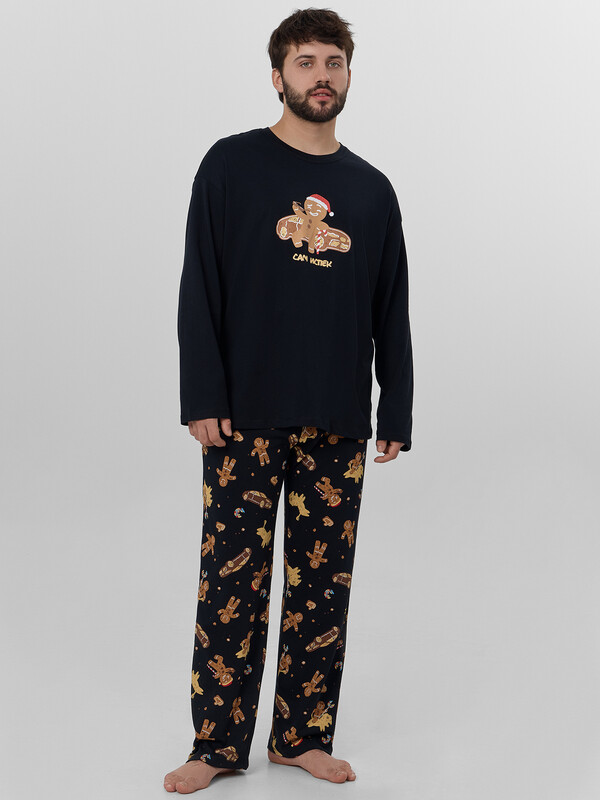 Комплект состоит из джемпера и брюк. Комплект из трикотажного кулирного полотна, 100 % хлопок, 160 гр /м2. Джемпер свободного силуэта. Горловина округлой формы, обработана обтачкой из основного полотна. Рукава втачные, длинные. Нижние срезы обработаны швом в подгибку на двухигольной плоскошовной машине. Брюки свободного силуэта, с классической линией талии. Пояс цельнокроенный с эластичной тесьмой внутри 40 мм. Нижние срезы брюк обработаны швом в подгибку на двухигольной плоскошовной машине.