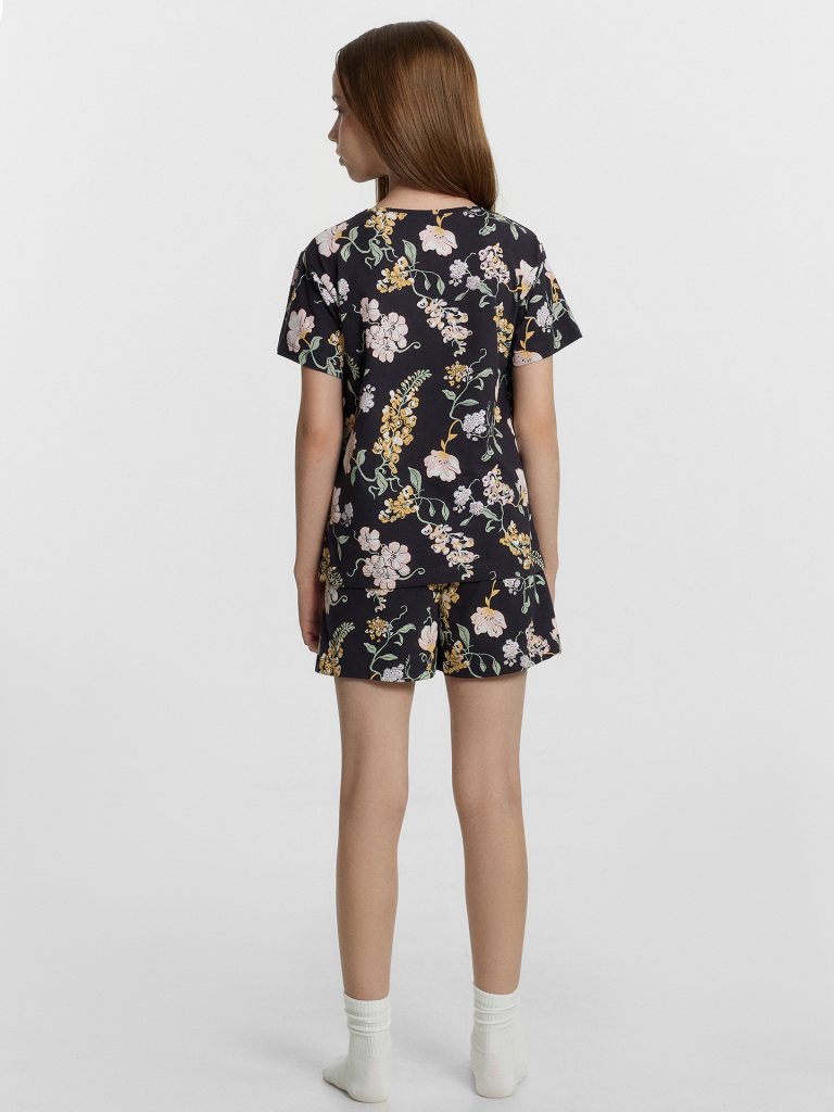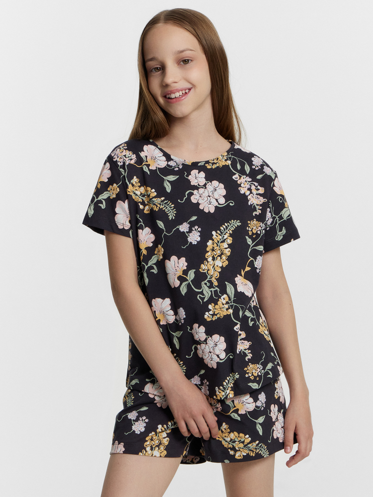 Комплект для девочки, состоит из футболки с короткими рукавами и шорт из натурального хлопка. Подходит для сна и отдыха. Материал очень приятный к телу, хорошо пропускает воздух, что позволяет чувствовать себя комфортно даже в жаркую погоду. Идеальный выбор детской одежды для дома. Стильно, красиво, комфортно. Футболка декорирована интересным принтом, шортики однотонные. Широкий размерный ряд, базовые и яркие расцветки, модели с принтами, рисунками и печатями. Купите детскую пижаму для девочки от Mark Formelle, порадуйте ребенка красивым и стильным подарком!