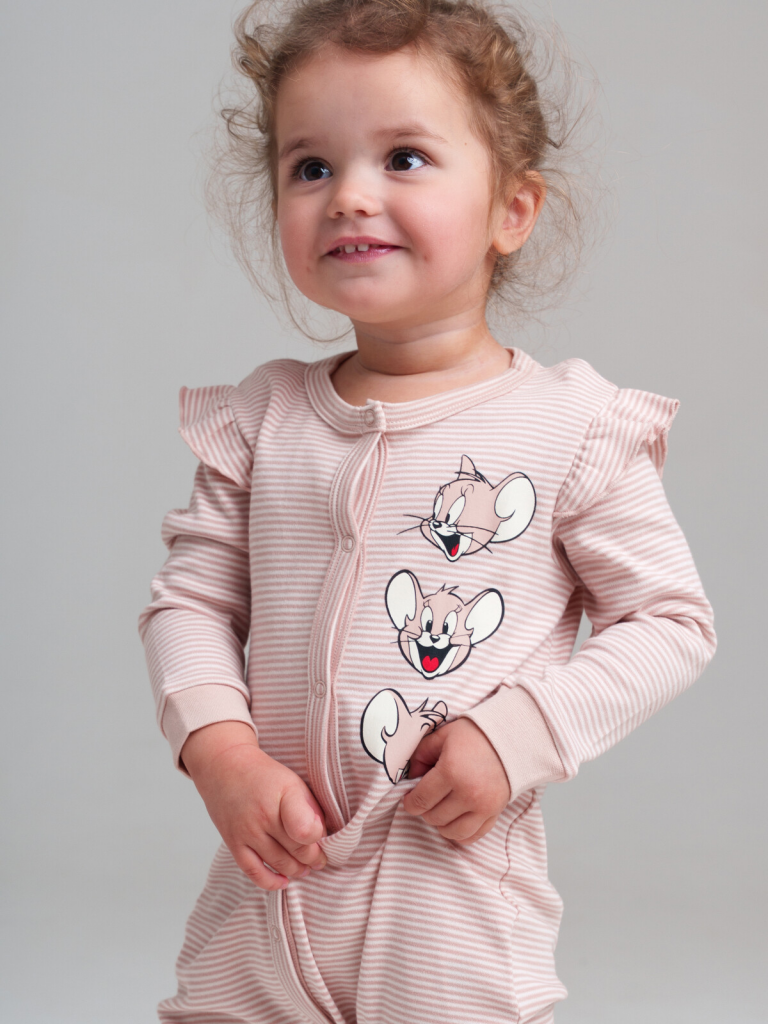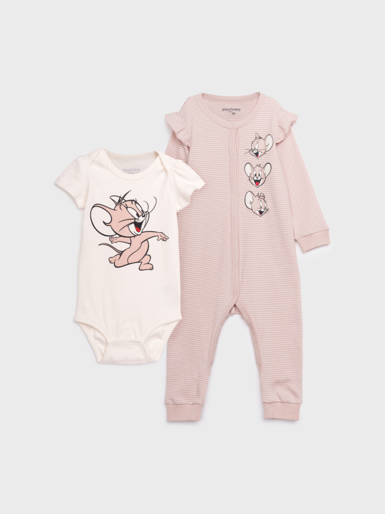 Комплект детский трикотажный для девочек: боди, комбинезон молочный,светло-бежевый