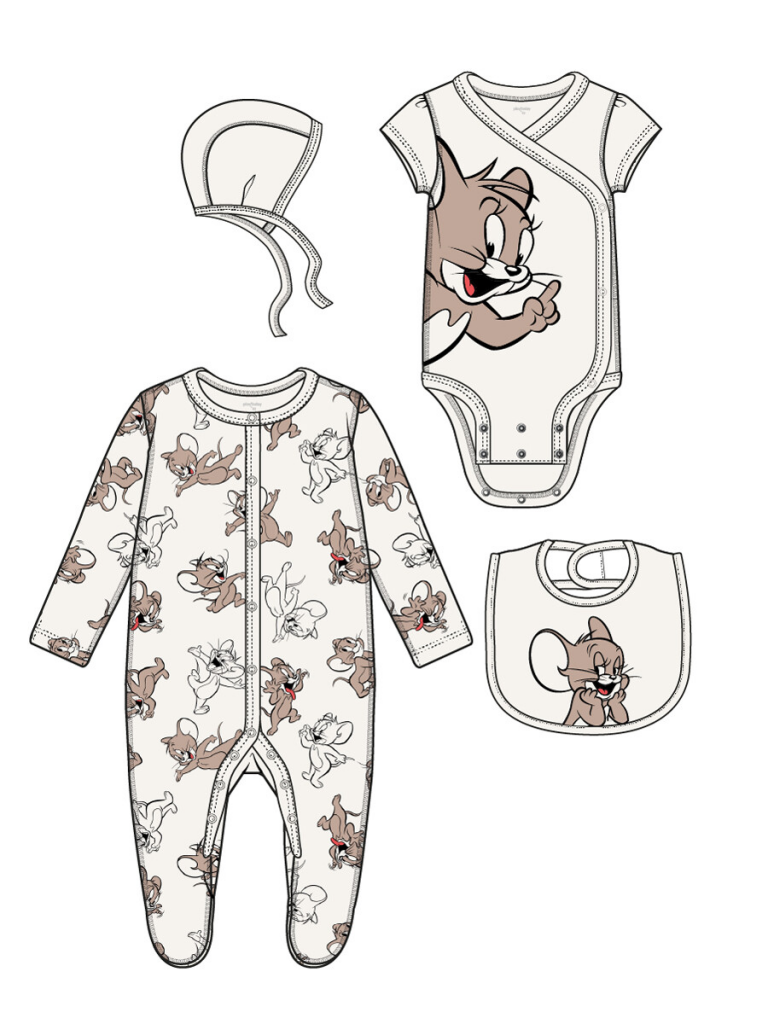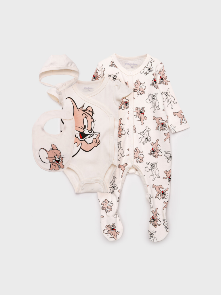Набор для новорожденных: боди, комбинезон, нагрудник, чепчик. Комплект: боди, комбинезон, шапка из натурального хлопкового двойного трикотажа. Комбинезон на кнопках. Кнопки внизу - 2 ряда, боди растет вместе с малышом. Чепчик с завязками. Нагрудник на липучке. Закрытые ножки для размеров 56-62.