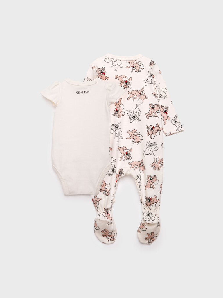 > Комплект детский трикотажный для девочек: боди, комбинезон, нагрудник, чепчик молочный,коричневый