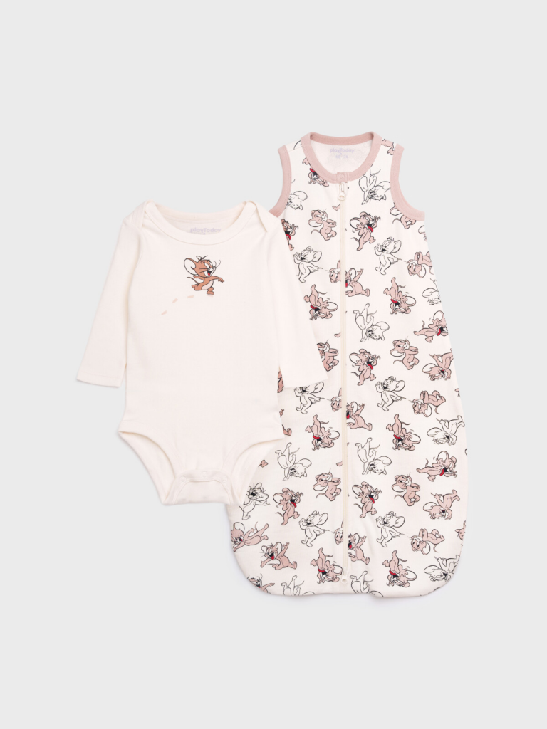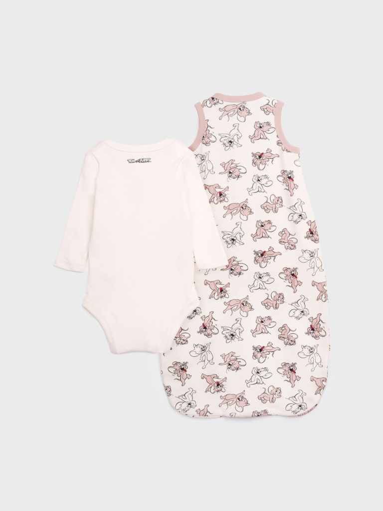 Комплект детский для девочки: боди, спальный мешок. Комплект: боди, спальный мешок из натурального хлопкового двойного трикотажа. Кнопки внизу - 2 ряда, боди растет вместе с малышом. Спальный кокон на молнии.