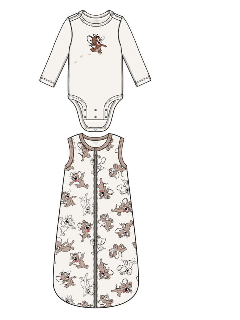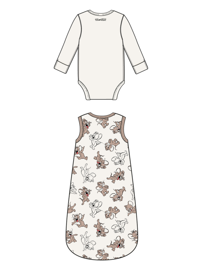 Комплект детский трикотажный для девочек: боди, спальный мешок молочный,коричневый