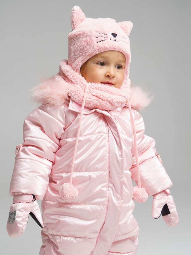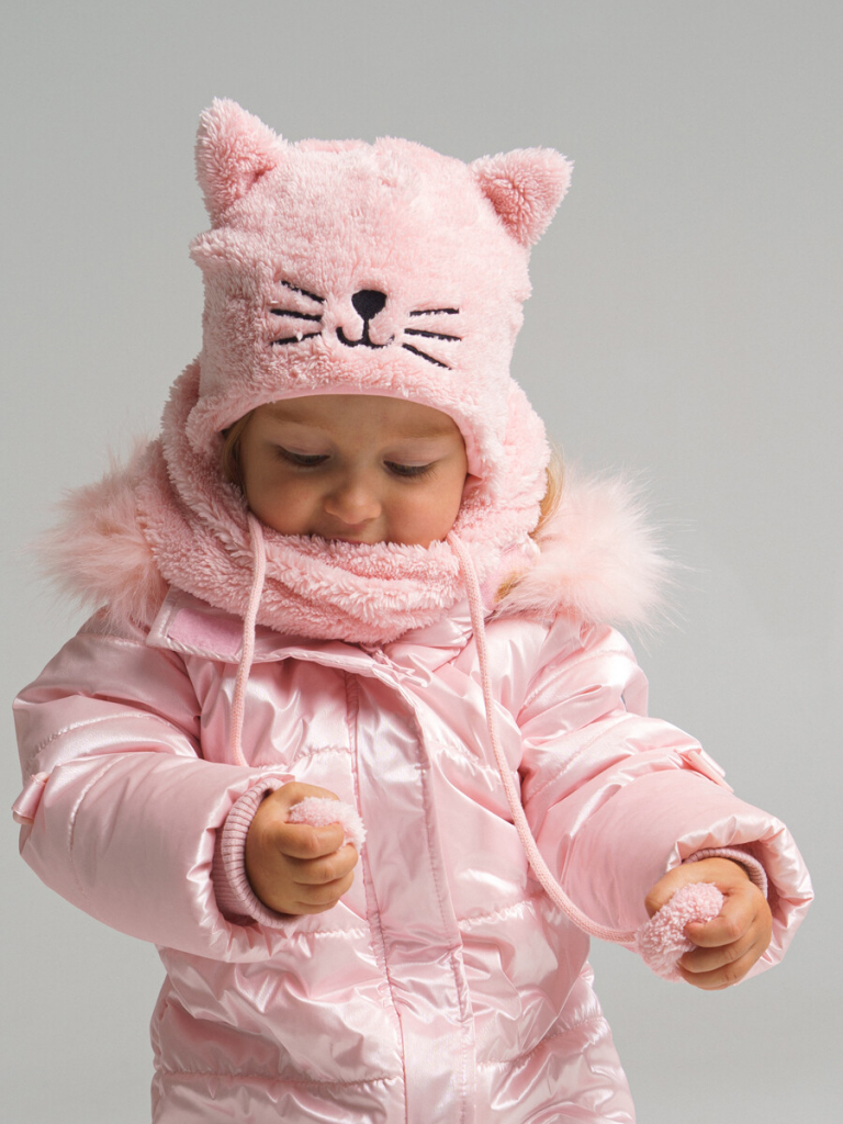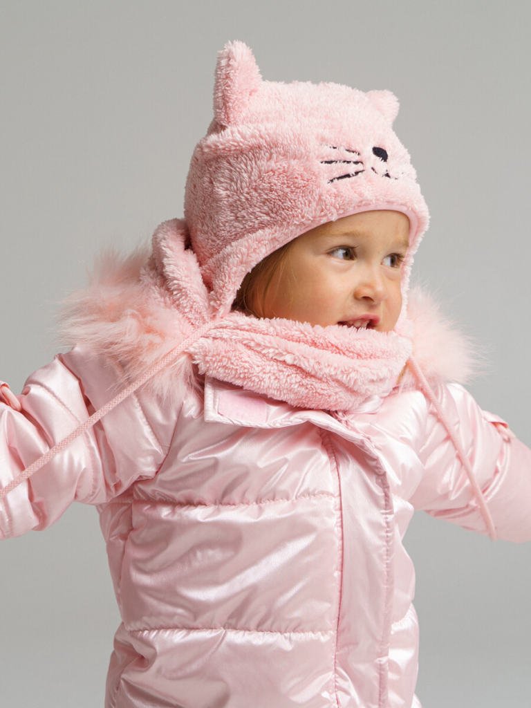 > Комплект детский вязаный для девочки: шапка, снуд светло-розовый