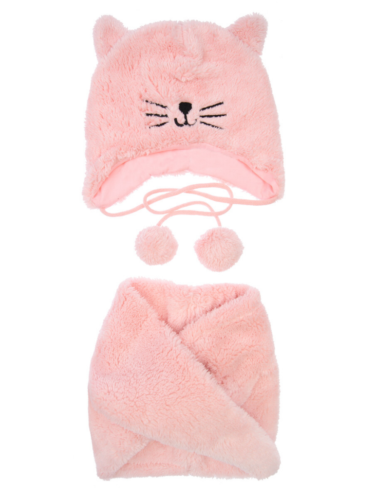 Комплект детский вязаный для девочки: шапка, снуд светло-розовый