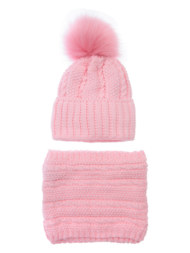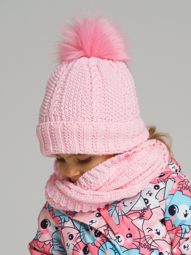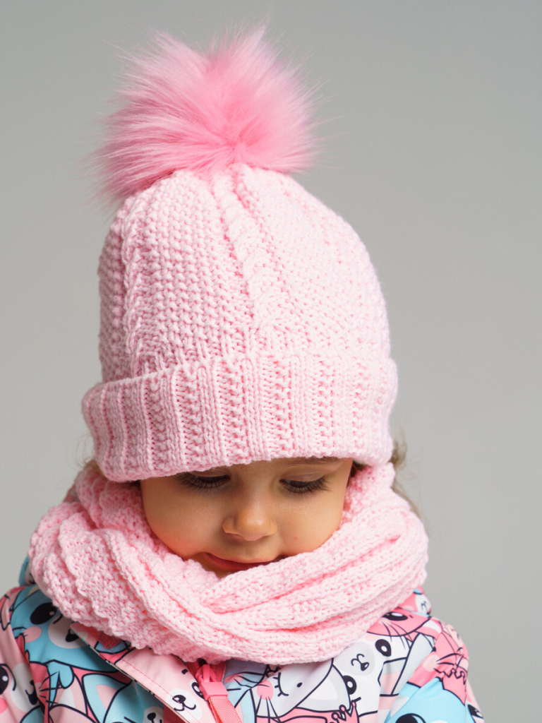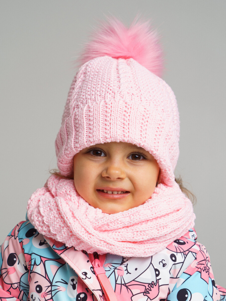 > Комплект детский вязаный для девочки: шапка, снуд светло-розовый